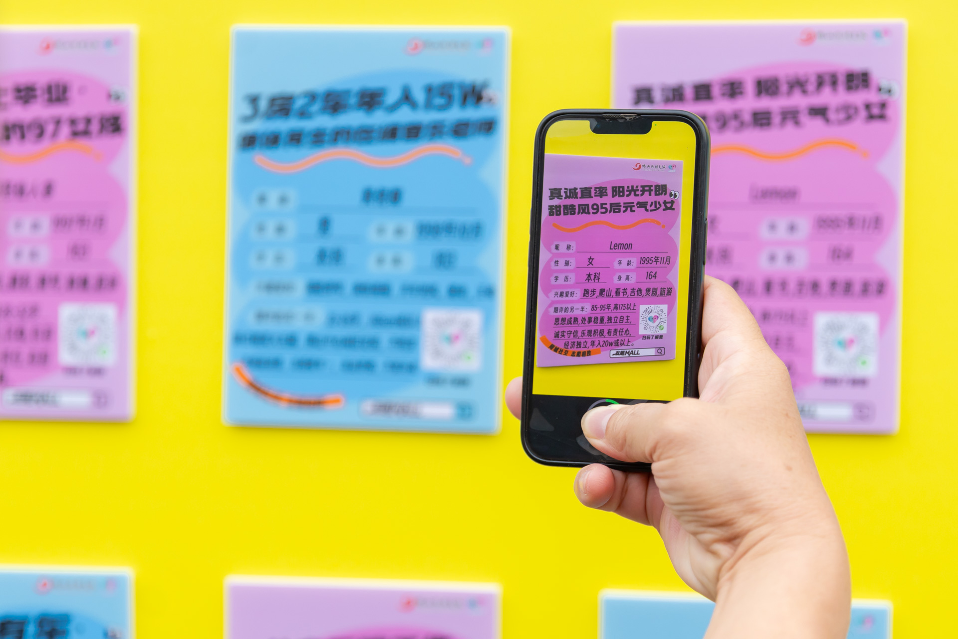 此外,友趣会在徒步终点世纪莲体育中心设立“友趣相亲角”网红打卡点,打造集趣味互动、潮流打卡、情感交流于一体的青年社交新聚场。上百位友趣会单身青年的个性化征友信息卡片闪亮上墙,吸引了众多单身青年驻足咨询、在线征友,现场还设置了趣味互动游戏,实现交友与娱乐两不误。