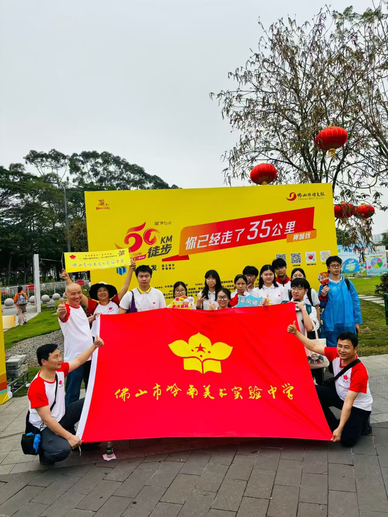 雨幕之中,佛山二中、佛山市岭南美术实验中学等本土院校的学子身影,成为徒步路上最具活力的风景线。细雨绵绵,却丝毫未磨灭少年热忱。佛山二中千余名师生及家长从校门出发,整齐汇入徒步大军;佛山市岭南美术实验中学学子身着校服,青春朝气与春日暖意相融。