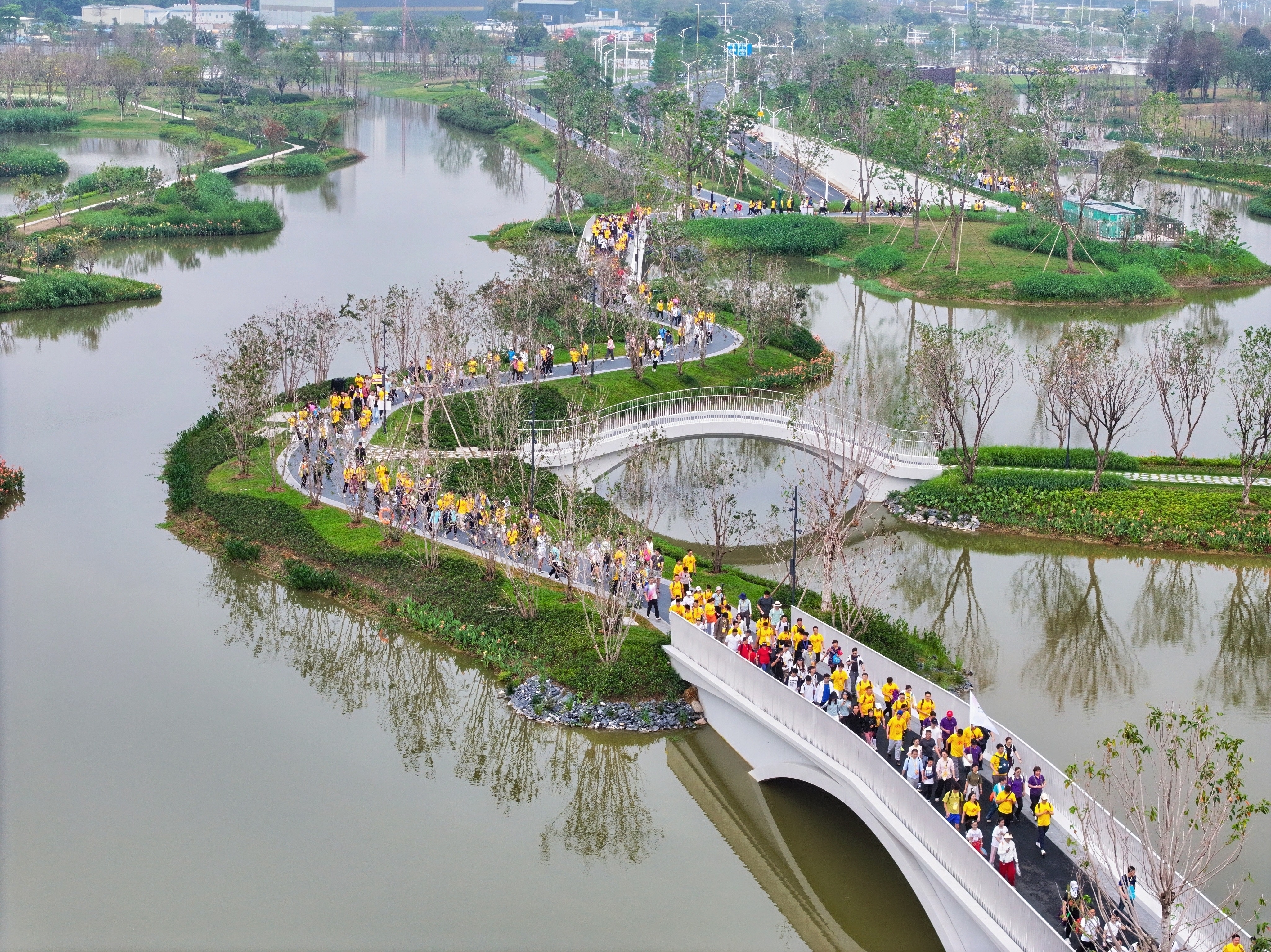 从云鹭湿地公园穿行而过,徒步大军继续向前进发。而身后,白鹭依旧翩翩,水波依旧温柔。这一程,不仅丈量了脚步的距离,更让每一位参与者,与这座城市最美的春天、最燃的梦想,撞了个满怀。