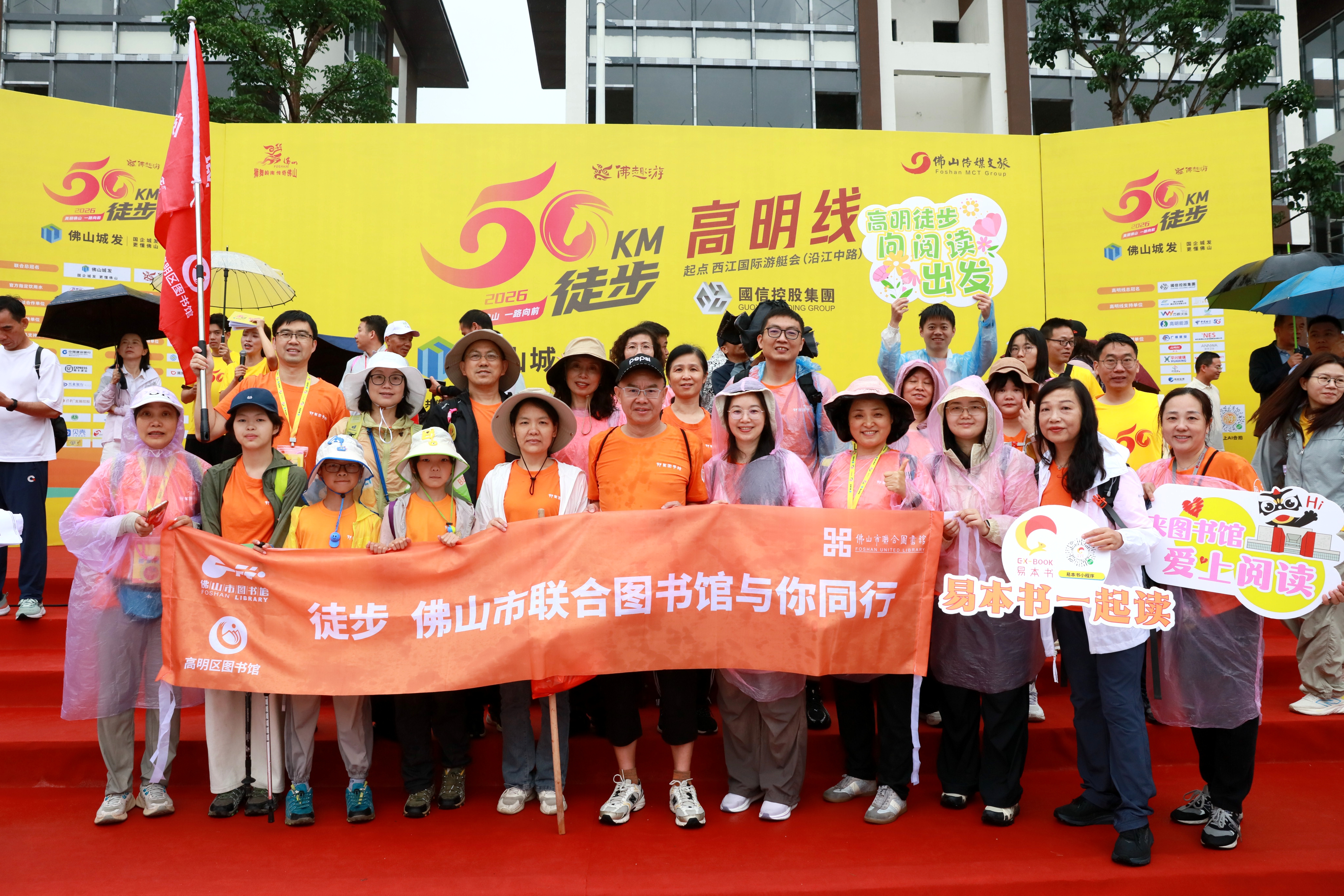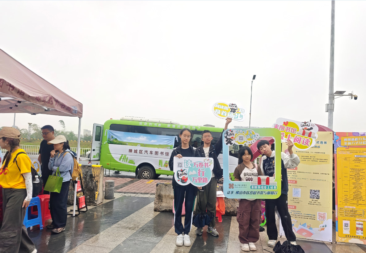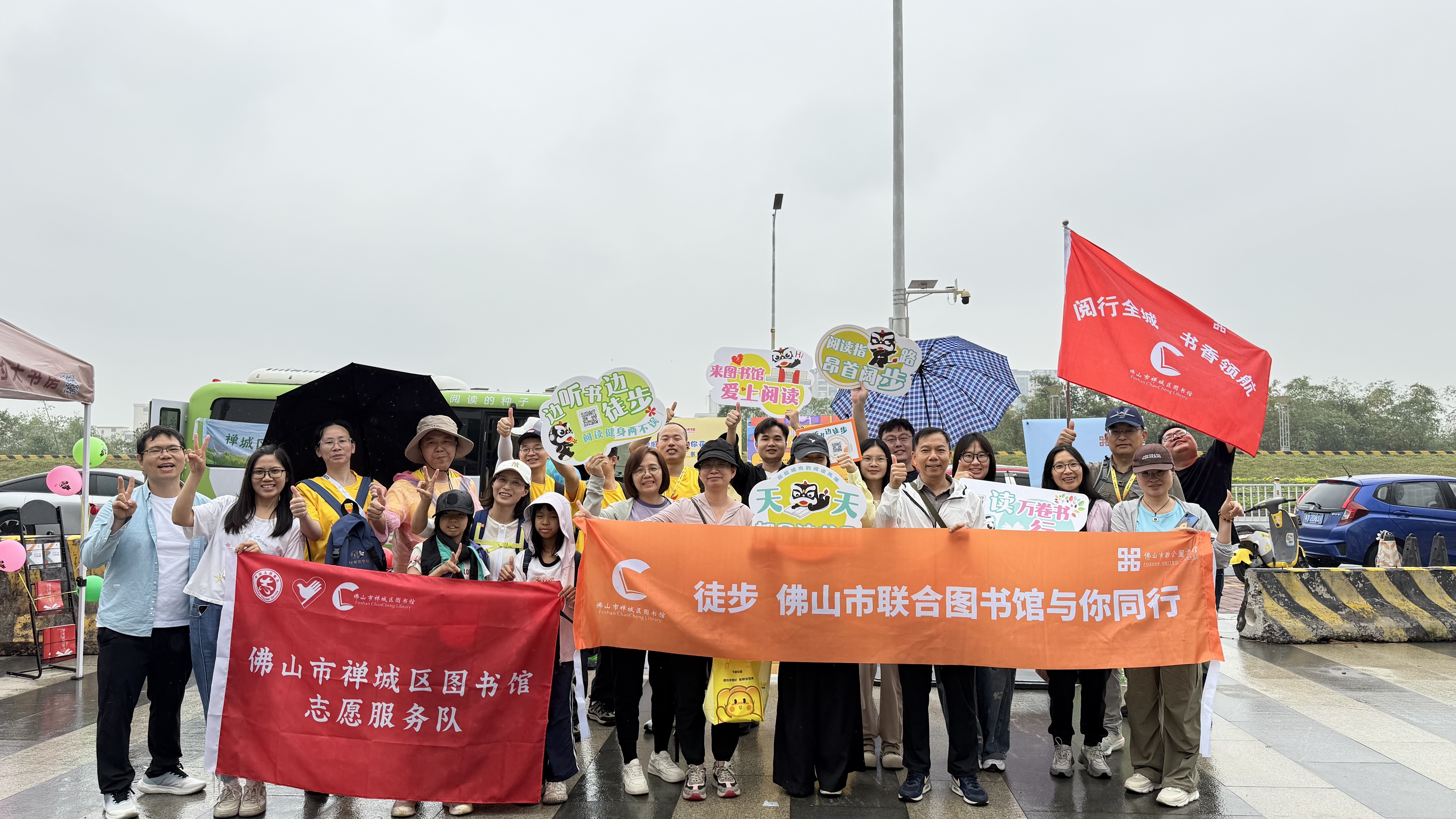 清晨7时30分,蒙蒙细雨中的各线起点分外热闹。由馆员、邻里图书馆馆长与热心读者组成的“佛山全民阅读方阵”身着醒目橙色T恤,手举阅读标语,从各区起点同步出发。这支行走的书香队伍,成为风雨中最亮眼的文化流动风景线。