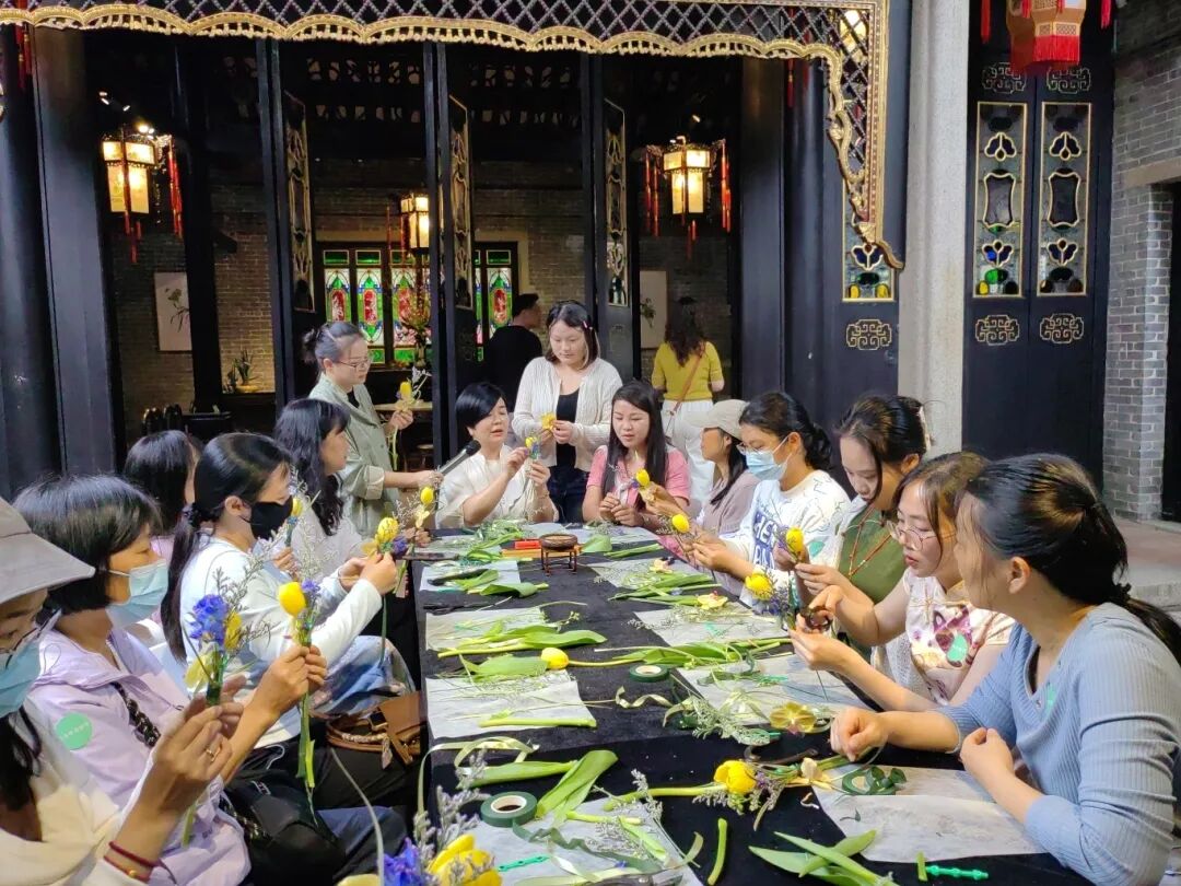 据南宋吴自牧《梦粱录》记载:“仲春十五日为花朝节,浙间风俗,以春序正中,百花争放之时,最堪游赏。”自古以来,民间便以设案供花、踏青寻芳、巧手簪花等习俗,传承花朝节的文化精神。本次梁园花朝节活动以“四般雅事”为主线,深度融合插花、闻香、品茶、赏画等传统文化项目,搭配岭南非遗匠心元素,让古老节俗融入现代生活,吸引众多亲子家庭、传统文化爱好者踊跃参与。