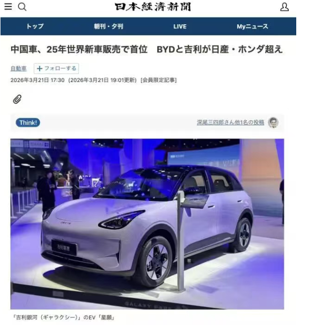 2026年刚开年不久,我看到《日本经济新闻》公布了一组很有意思的数据:2025年,咱们中国车企在全球累计卖出了将近2700万辆车,同比增长了10%,直接超过了日本车企的2500万辆,头一回坐上了全球销量冠军的宝座。