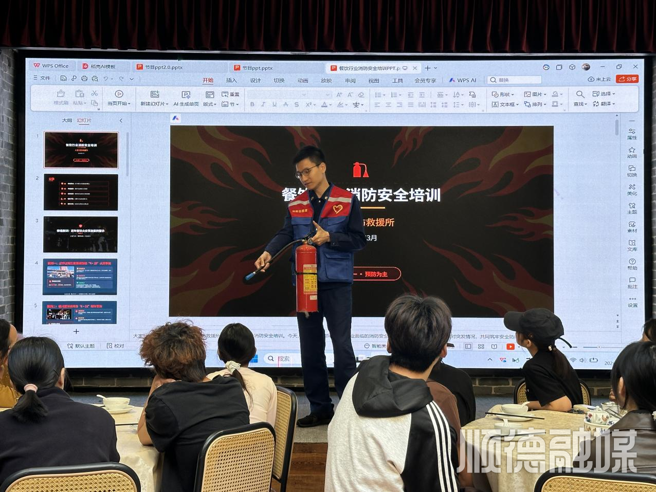 除专项检查外,顺德区消防救援大队还聚焦餐饮行业消防安全薄弱环节,组织辖区多家餐饮门店从业人员开展消防安全专题培训。培训中,授课人员结合餐饮场所真实火灾案例,深入剖析常见火灾隐患,详细讲解初期火灾处置方法、应急疏散逃生技巧等实用知识。培训结束后,现场组织参训人员开展实战模拟演练,通过“学练结合”的方式,切实提升从业人员应急处置能力和消防安全素养,推动消防安全知识入脑入心。