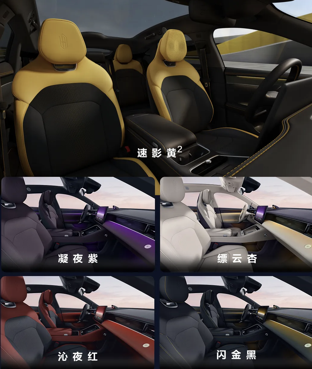内饰部分,新车车内提供沁夜红、速影黄、凝夜紫、闪金黑、缥云杏共五款内饰配色选择,配备悬浮式中控屏、三辐式方向盘、怀挡式换挡杆,并首发随动四维屏,支持前后伸缩和左右旋转等多项功能。辅助驾驶方面,新车全系标配新一代896线双光路图像级激光雷达以及华为乾崑智驾ADS 4.1。