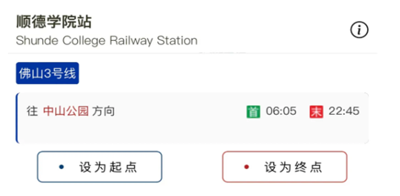 距离场馆2.7公里有顺德学院地铁站,往中山公园方向末班车营运时间为22:45,并设有顺德M3001地铁接驳专线,每天运行时间为7:00至20:00。