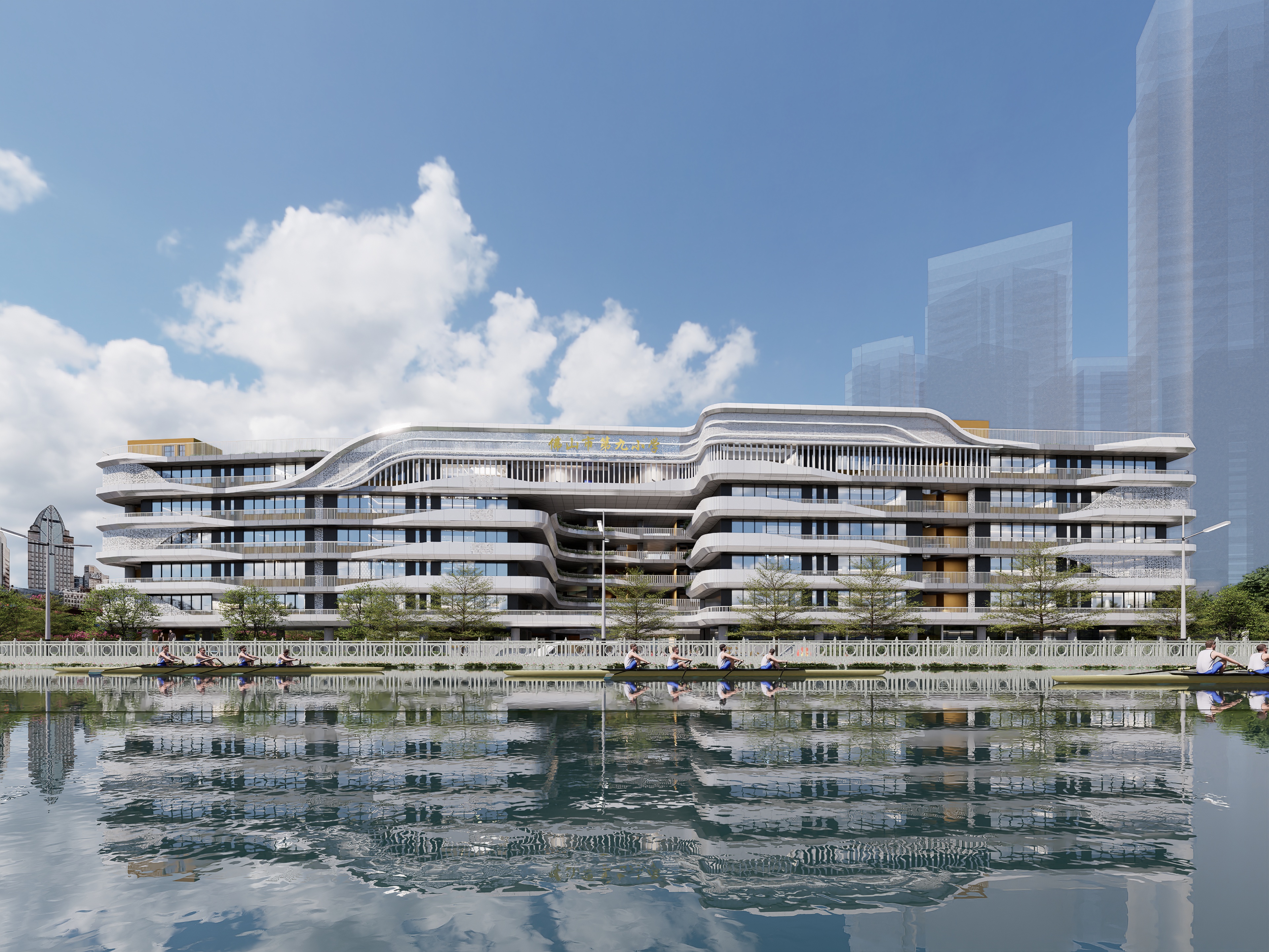 佛山市第九小学鲤鱼沙校区正面效果图。