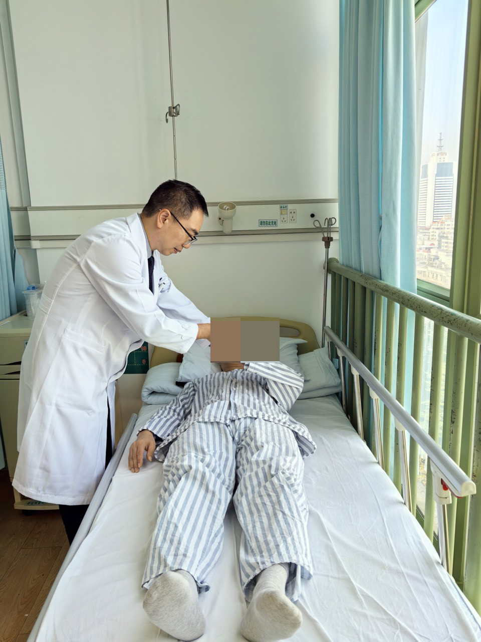 术后第二天,何强便能下床行走。但真正的“奇迹”发生在开机那一刻——术后一个月,当设备正式启动,何强清晰地感受到身体的变化:原本僵硬的肢体渐渐放松,不受控制的震颤慢慢平息。当他在医生的鼓励下站起身,稳稳地迈出第一步时,眼泪瞬间模糊了双眼。“开机那一刻,生命就像从头开始。”何强说。