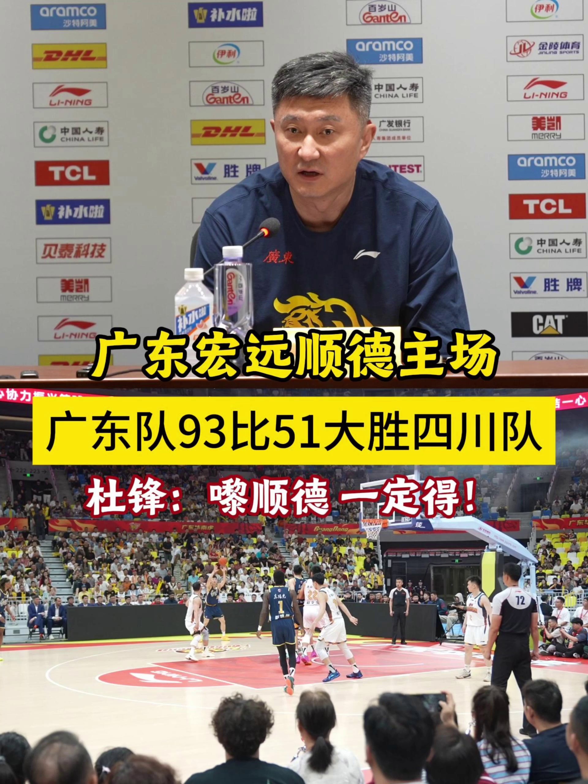 顺德主场,广东93比51大胜四川。杜锋:嚟顺德,一定得!