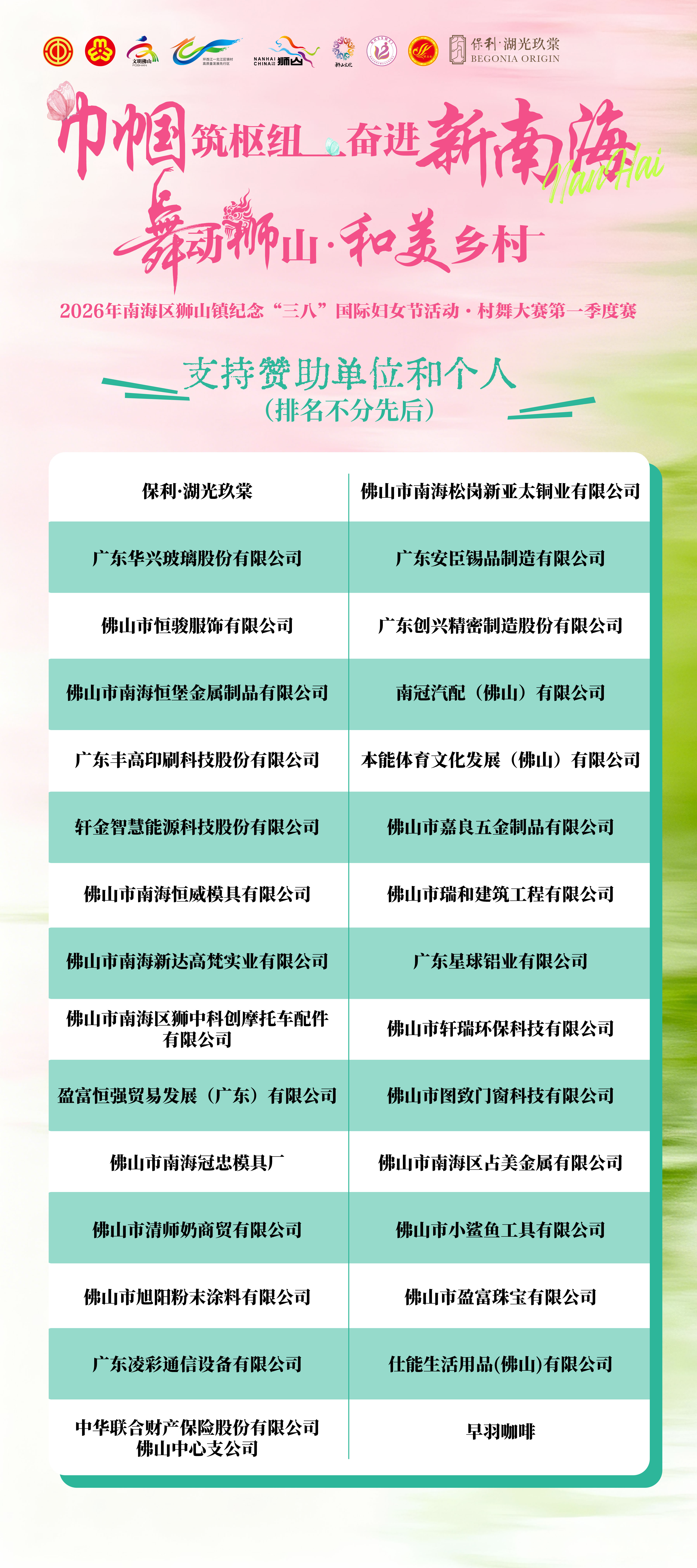 本次活动的成功举办,离不开社会各界的大力支持。保利·湖光玖棠、狮山女企业家协会、狮山恒益会等58个热心企业和个人纷纷慷慨解囊,为活动提供了有力保障。