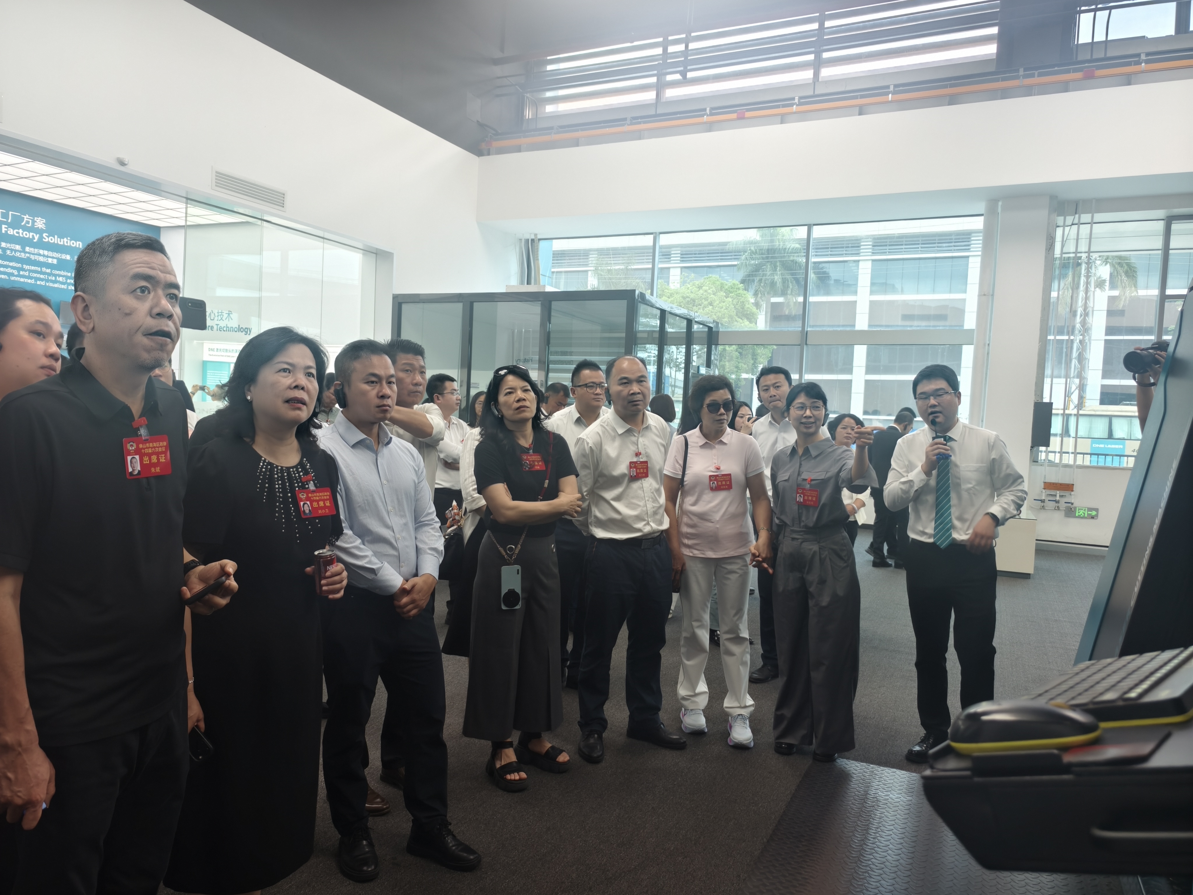 此次视察点位精心遴选、各具代表性,串联起南海文化软实力、产业竞争力、民生幸福感的生动实践图景。在南海区图书馆新馆,委员们实地察看场馆功能布局,深入了解公共文化服务供给情况。在迪能激光(广东)有限公司,委员们认真听取企业技术创新、产品研发与市场拓展情况介绍,为南海培育新质生产力、打造先进制造业集群的强劲势头由衷赞叹。走进南海丝厂66文创园,西樵大饭堂、森池咖啡等业态点缀其间,百年丝厂的工业文脉与现代文旅消费场景深度融合,焕然一新的老工业厂房让委员们频频点赞。