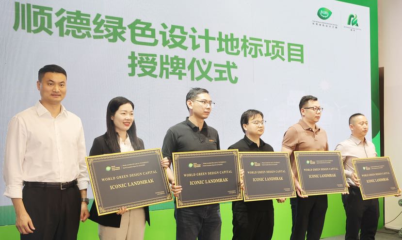 在“顺德申都成果发布”环节,一批在绿色设计领域作出突出贡献的设计师被授予“绿色设计工程师”称号。随后,11个具有代表性的绿色设计地标项目获得授牌,包括云鹭上市小镇、顺峰山公园、广东美的微波炉制造有限公司、库卡机器人(广东)有限公司、中国联塑集团控股有限公司、伊之密股份有限公司、广东申菱环境系统股份有限公司、悍高集团股份有限公司、盈峰环境科技集团股份有限公司、广东工业设计城等,涵盖了产业载体、生态公园、智能工厂等多个领域。