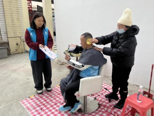 3月20日,农历二月二龙抬头,这一次,群姨背着她的“移动理发屋”,把服务送进了客厅。 “陈叔、洁姨(化名),我们带理发师来给你们理发了!”伴随着一声声亲切的问候,社工与群姨一同敲开了低保对象的家门。陈叔因腿脚不便,家门口的阶梯也较高,平日里出门成了一件难事。群姨耐心询问陈叔对发型的要求,一边精心修剪,一边陪老人唠家常。伴随着清脆的剪刀声,老人原本凌乱、花白的头发变得整齐利落,精神面貌焕然一新。“你们想得太周到了,二月二能在家里理上发,这是给我们带来了好彩头啊!”陈叔对着镜子,摸着刚理好的头发,连连道谢。