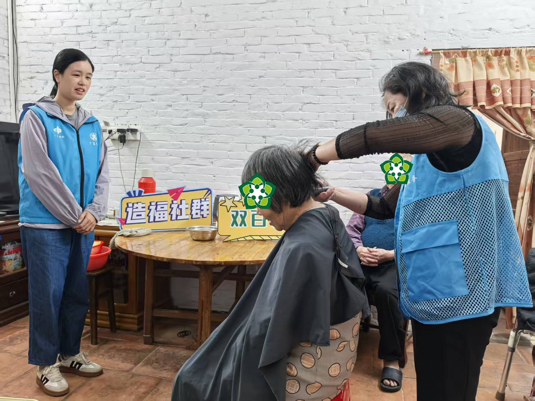 在乐从镇,55岁的群姨和同样身为残疾人的丈夫冯叔相互依靠、彼此扶持。群姨生活拮据,且长期饱受高血压、类风湿等疾病的困扰,是双百社工的“老熟人”。跟进过程中双百社工不仅成功链接佛山市双百圆梦健康公益项目为她精准对接医疗资源,还多次陪同她前往医院就诊。更重要的是,在长期的陪伴过程中,社工们走进了她的生活,发现了她的剪发技艺,以及她渴望重新证明自身价值、为家庭分担责任的强烈愿望。