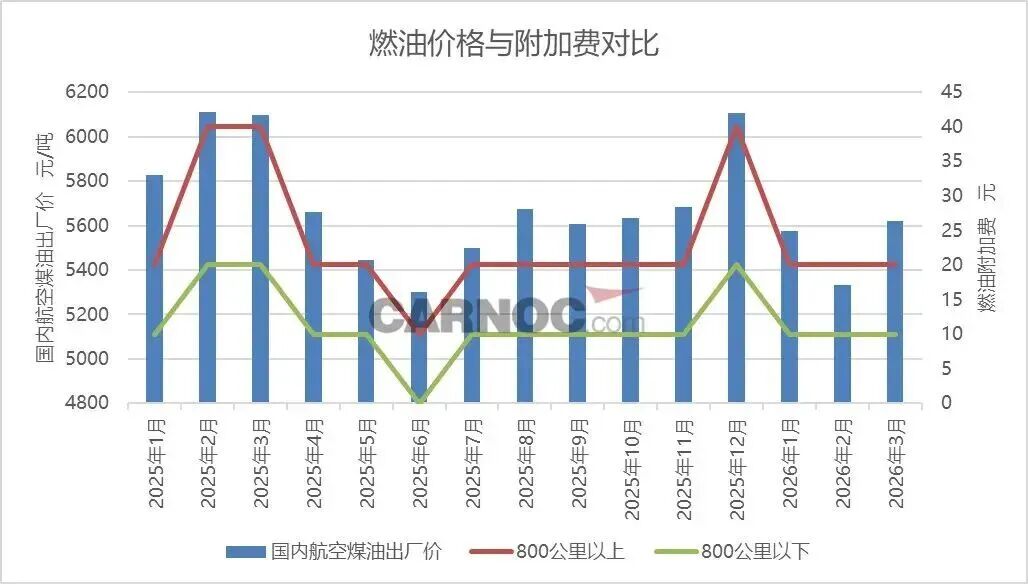 根据国家发展改革委、民航局制定的有关燃油附加费与航空煤油价格联动基础油价的机制,我国国内航线的燃油附加费以每吨航空燃油5000元为基准,超过5000元开始征收燃油附加费,征收额度按照燃油价格超过5000元以上部分的80%来征收,其余20%由航空公司自己消化。