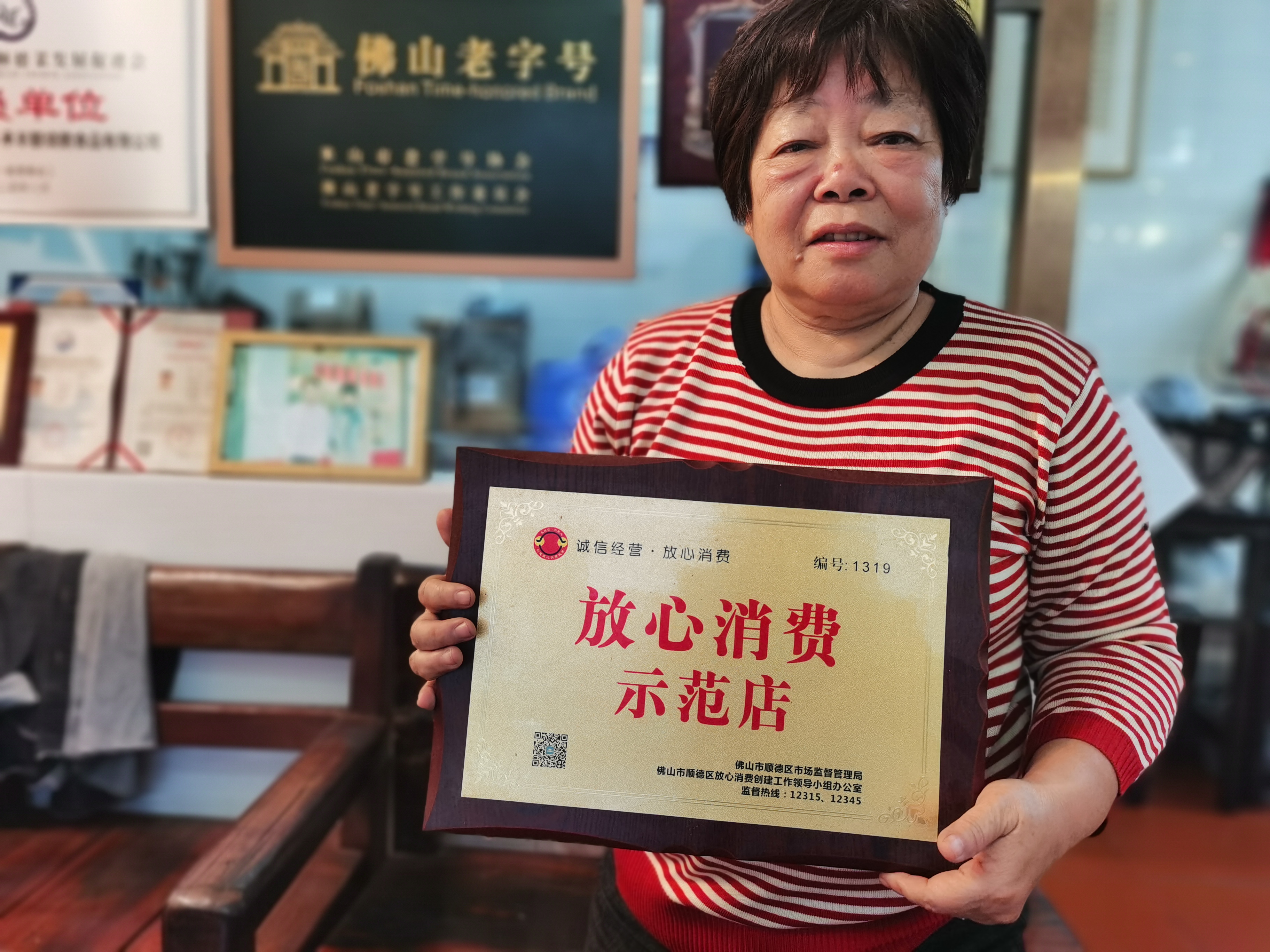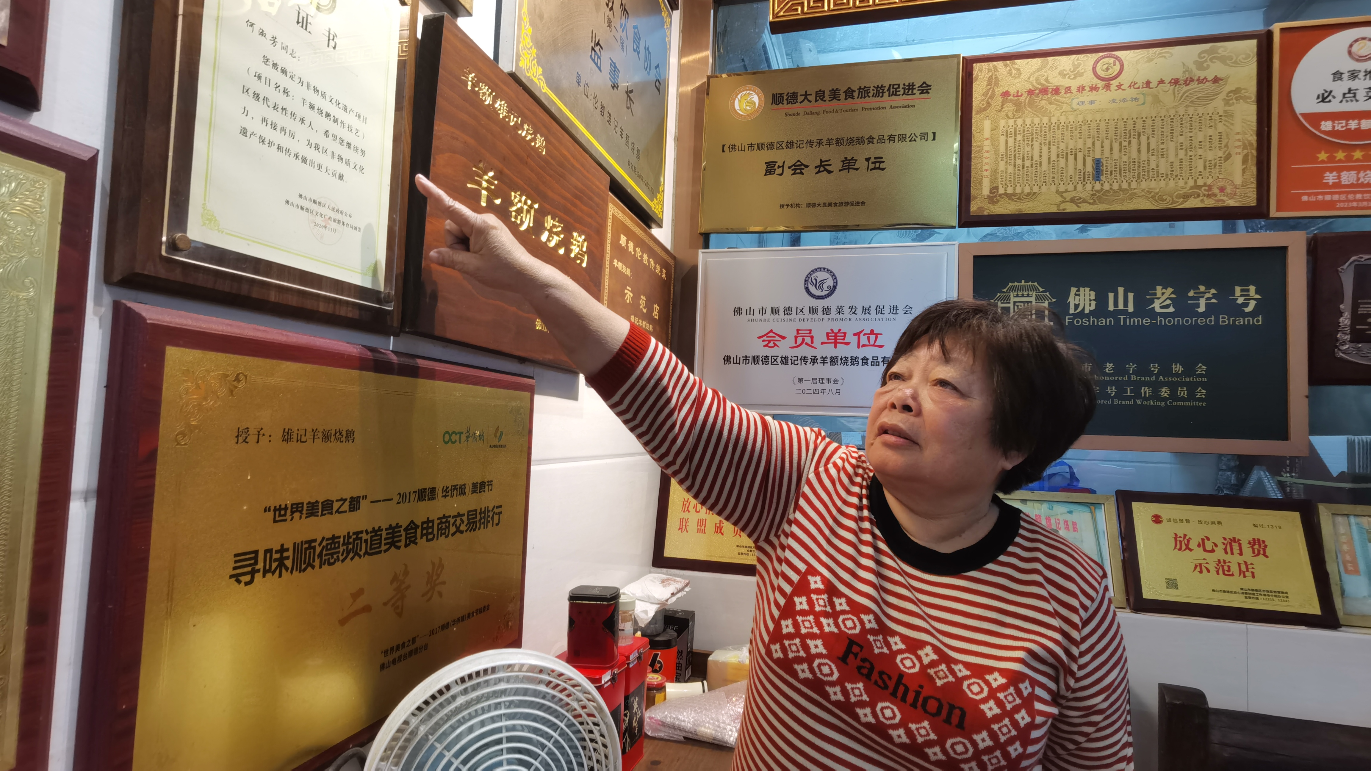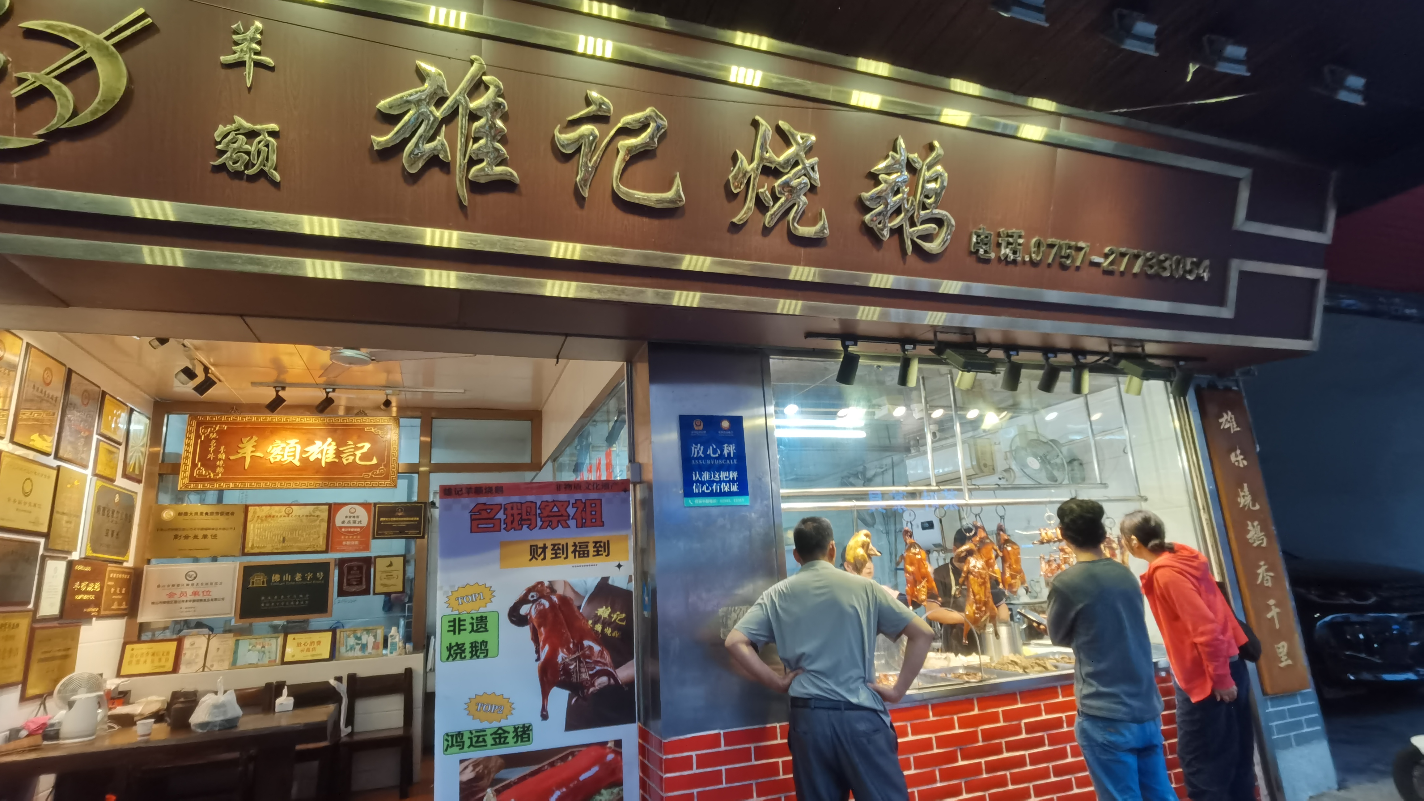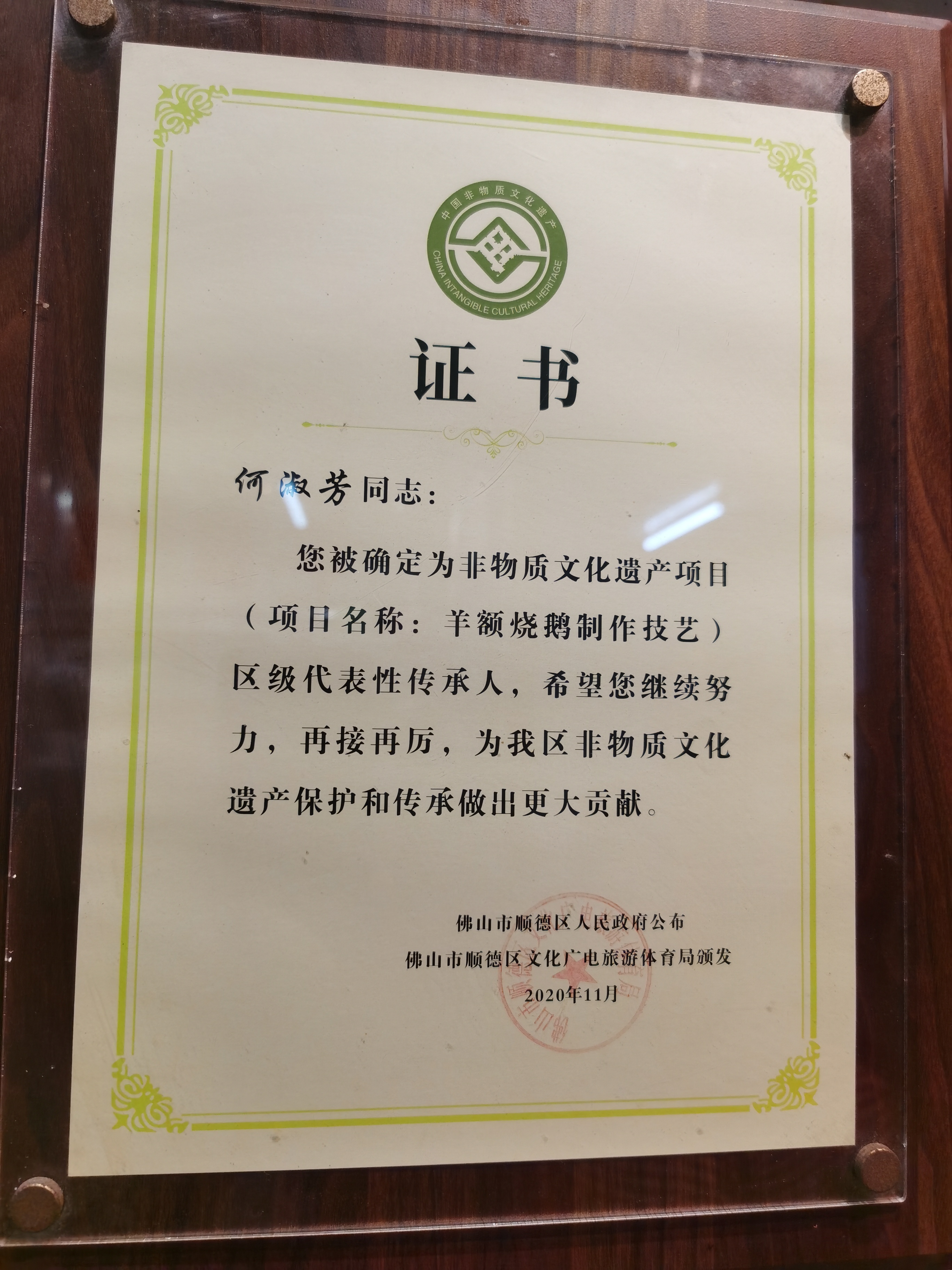 2026年1月,在由顺德菜发展促进会组织评定的首批“星级凤厨”评选中,何淑芳获得“三星凤厨”殊荣。这份荣誉,是对她50年坚守诚信、传承技艺的最好肯定。事实上,早在2020年11月,何淑芳凭“羊额烧鹅制作技艺”获得羊额烧鹅区级代表性传承人。雄记烧鹅店是区“放心消费诚信文旅联盟成员单位”,也是“放心消费示范店。”