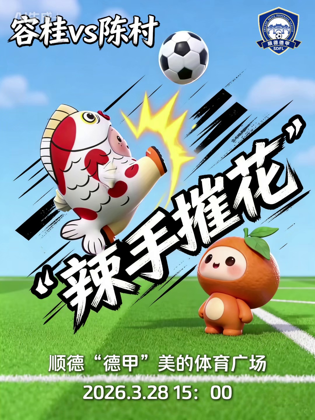 "辣手摧花"名场面即将上演~容桂鱼生队 VS 花YOUNG陈村队!3月28日 美的体育公园足球场,我们不见不散