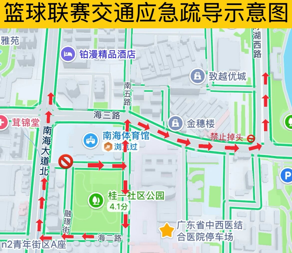 2026年广东省城市篮球联赛(佛山VS肇庆)将于3月28日在南海区桂城街道南海体育馆开展,为确保市民进场和离场有良好的体验,建议前往观看赛事的市民请尽量选择公共交通或徒步、骑行前往,若驾车前往的请规划好行驶路线,选择停车场停车后再选择公共交通或徒步前往观看。