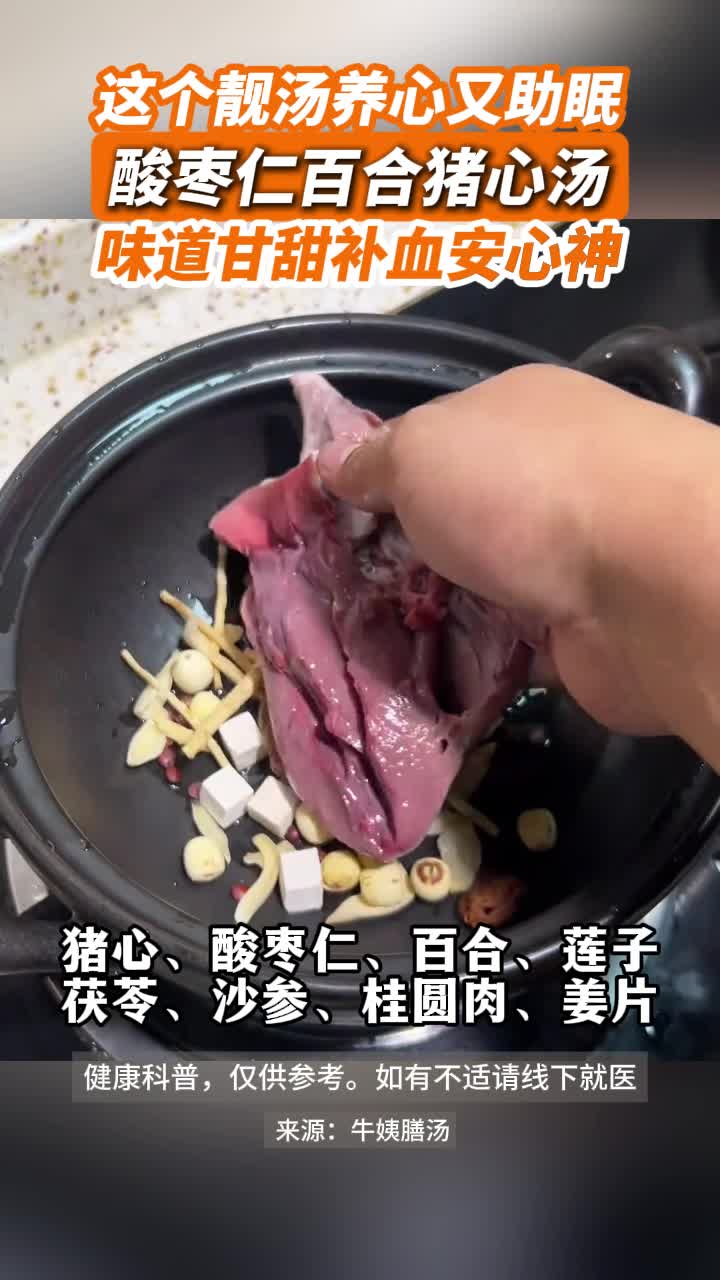 酸枣仁百合猪心汤,安心宁神帮助睡好觉。
