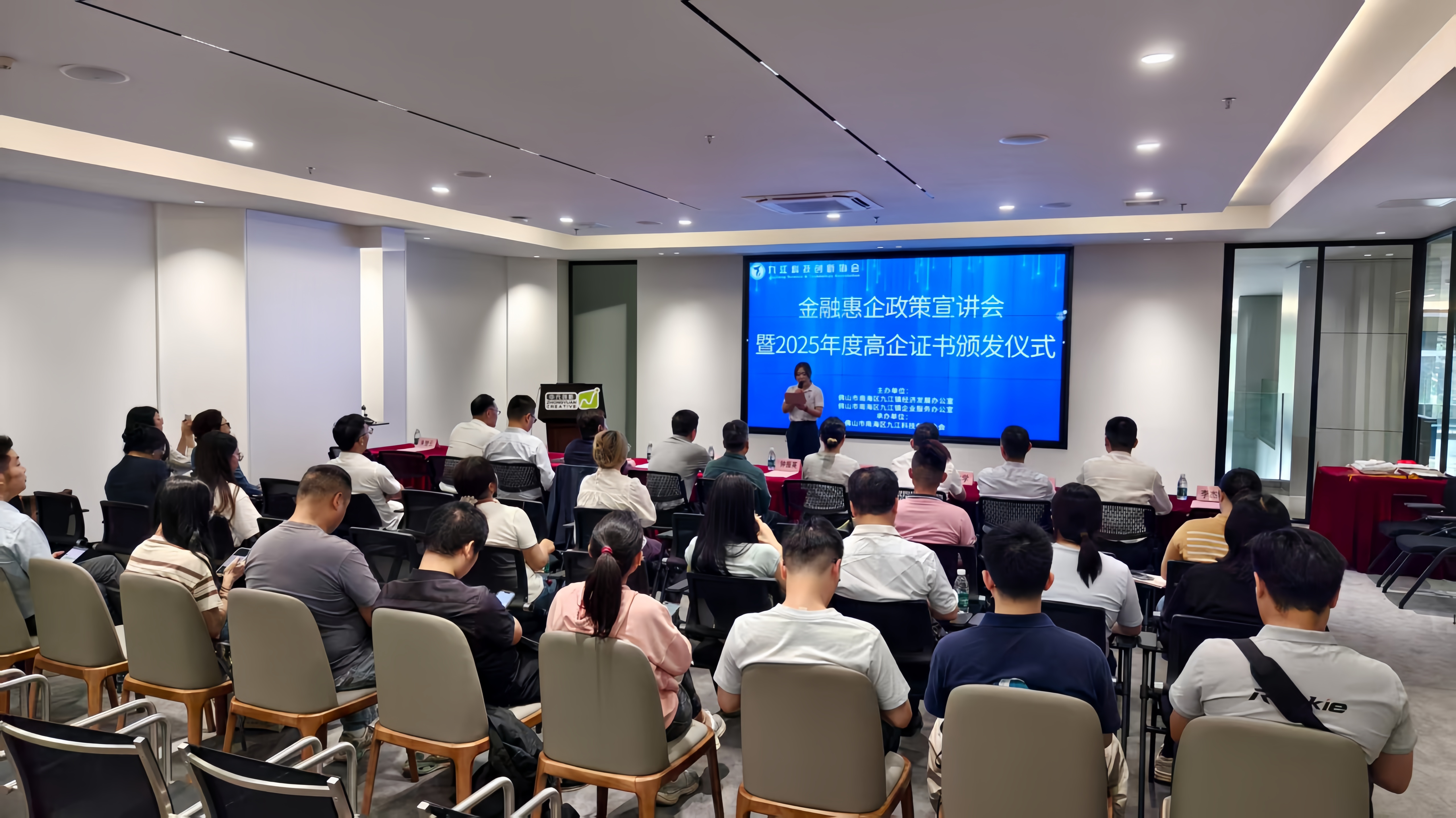 2026年九江镇促进中小企业发展金融惠企政策宣讲会暨2025年度高企证书颁发仪式活动现场