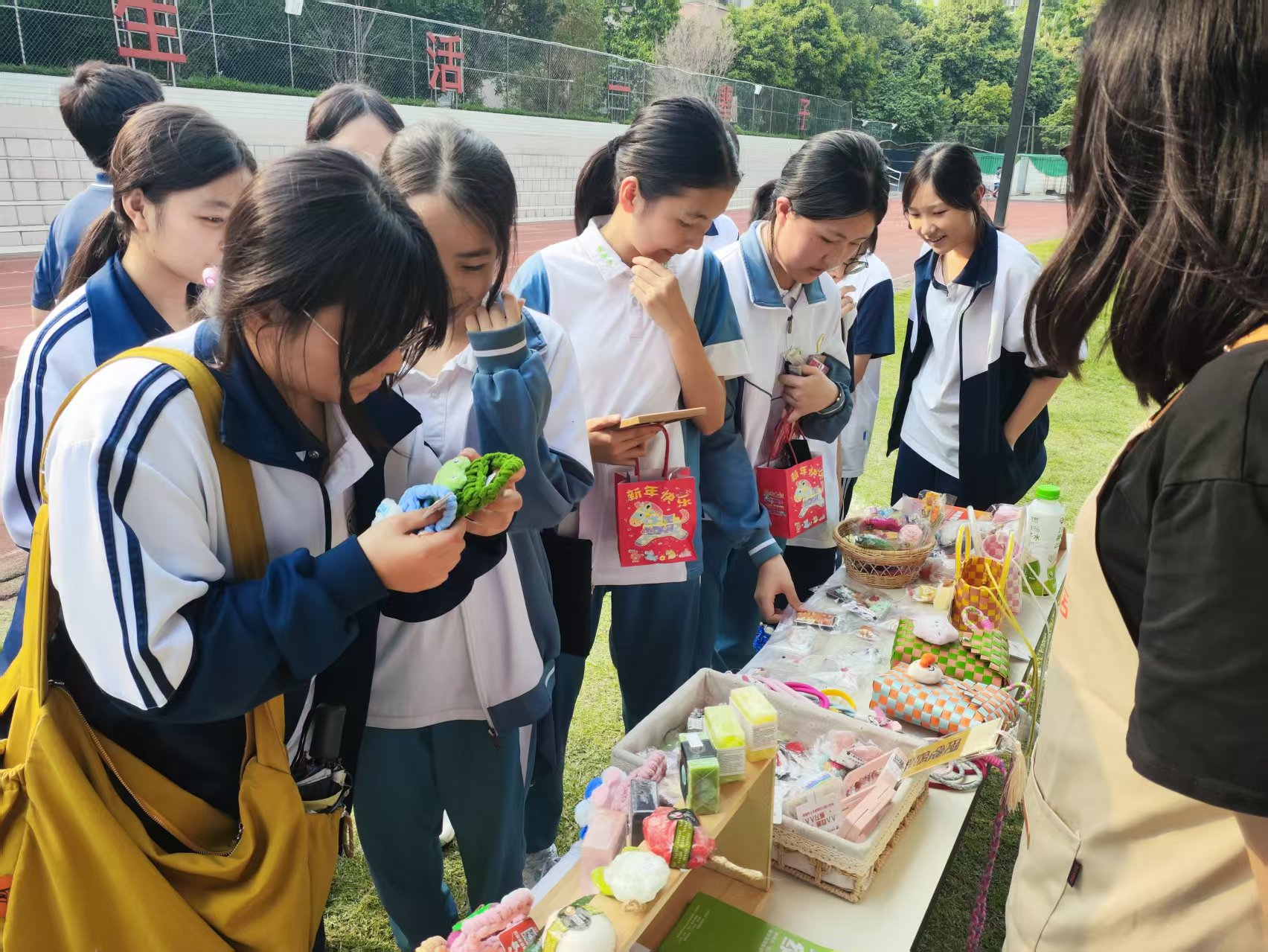 活动打造“家校社”德育平台,50名家长以“公益合伙人”身份参与,11家社会单位带来公益实践课程。公益集市融合传统文化、环保创意与红色教育,设置十二花神秀、变废为宝、红色知识互动等环节,近50个摊位参与其中。