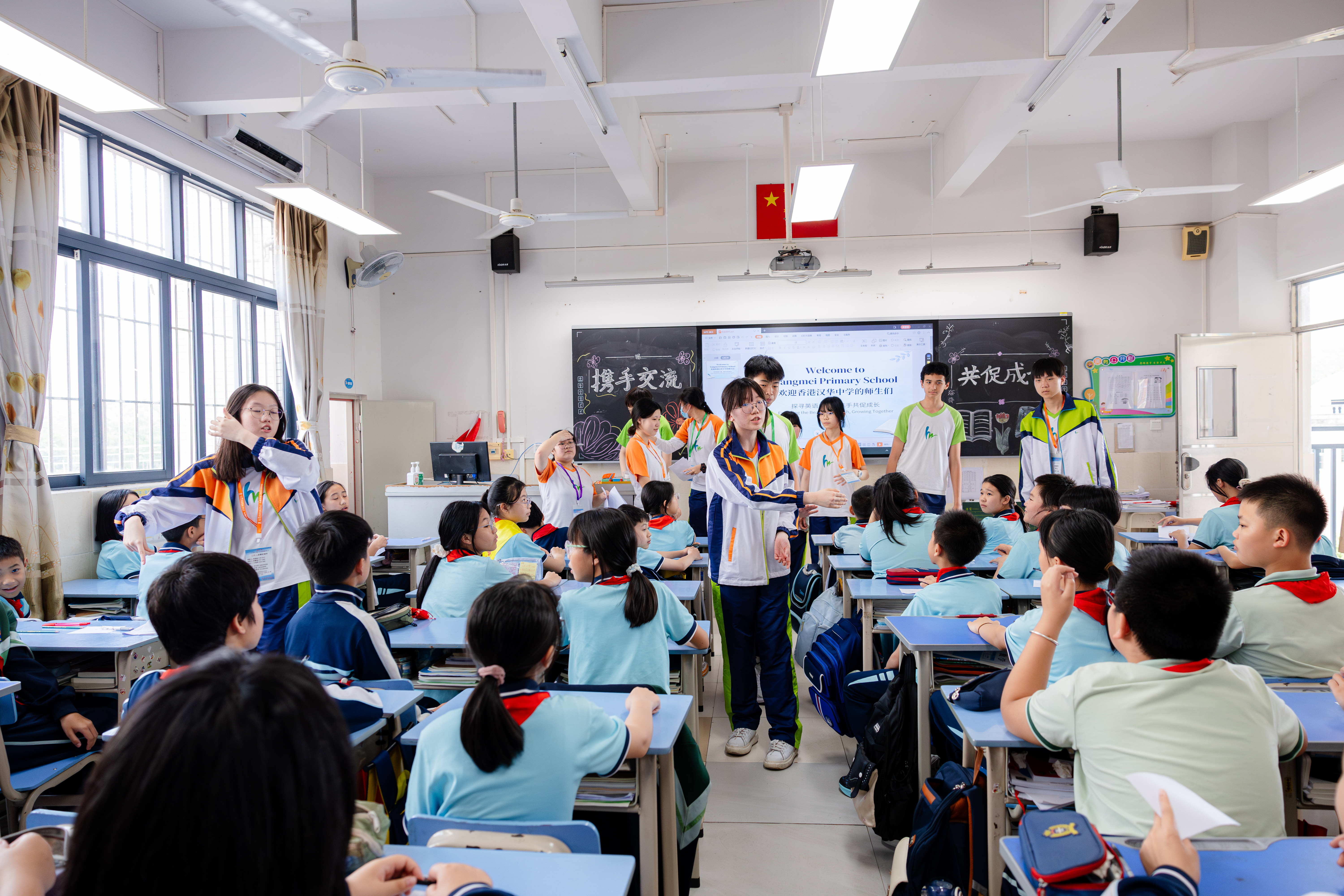 校际携手,以教为桥促成长。3 月 25 日下午,全体营员走进杨梅小学,开启粤港青少年教育文化交流。营员们实地参观校园环境、特色课堂与教学成果展示,围绕课程建设、素质教育、校园文化等话题深入交流,在互学互鉴中凝聚教育合作共识。课堂上,两地学生以班级对接形式走进五、六年级英语课堂,轻松互动、踊跃发言,在语言实践中提升能力、增进了解。体育馆与足球场上,毽球友谊赛、趣味踢毽子、女子足球友谊赛轮番上演,两地学生混合组队、协作拼搏,以运动联结青春,以竞技凝聚情谊。此次校际交流,既展现了杨梅小学办学特色,也为湾区青少年搭建起互学互鉴、携手成长的坚实桥梁,推动两地教育文化深度融合。