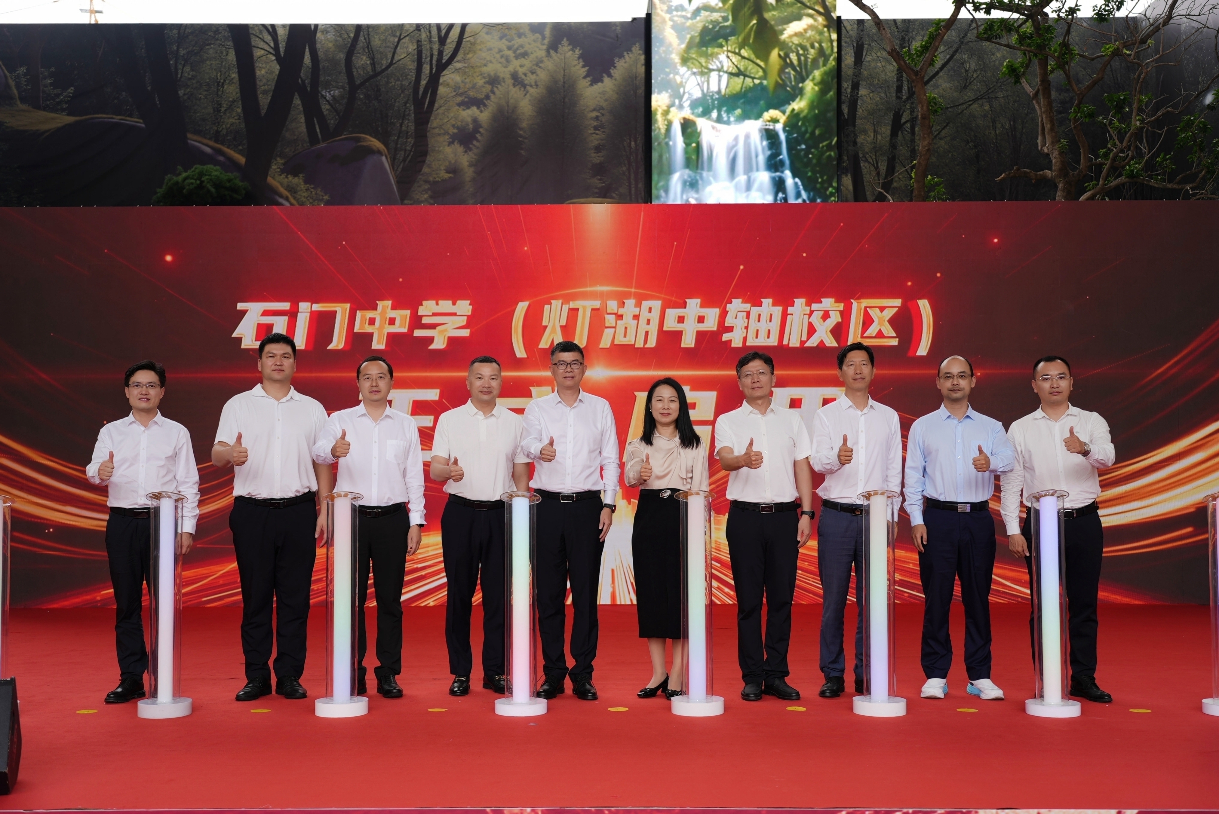 发布会现场,随着与会领导共同按下启动装置,石门中学(灯湖中轴校区)正式宣告启用。这是石门中学发展史上的重要时刻,也是南海区优化教育资源配置、推动义务教育优质均衡发展的关键落子。