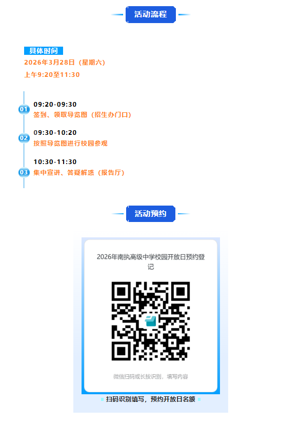 此外,为了让广大应届考生家长近距离感受南执高级中学的办学特色、优质师资与贴心服务,深度了解报考政策与招生详情,南执高级中学将于3月28日(周六)上午举办校园开放日活动,共话孩子升学规划,助力中考圆梦!