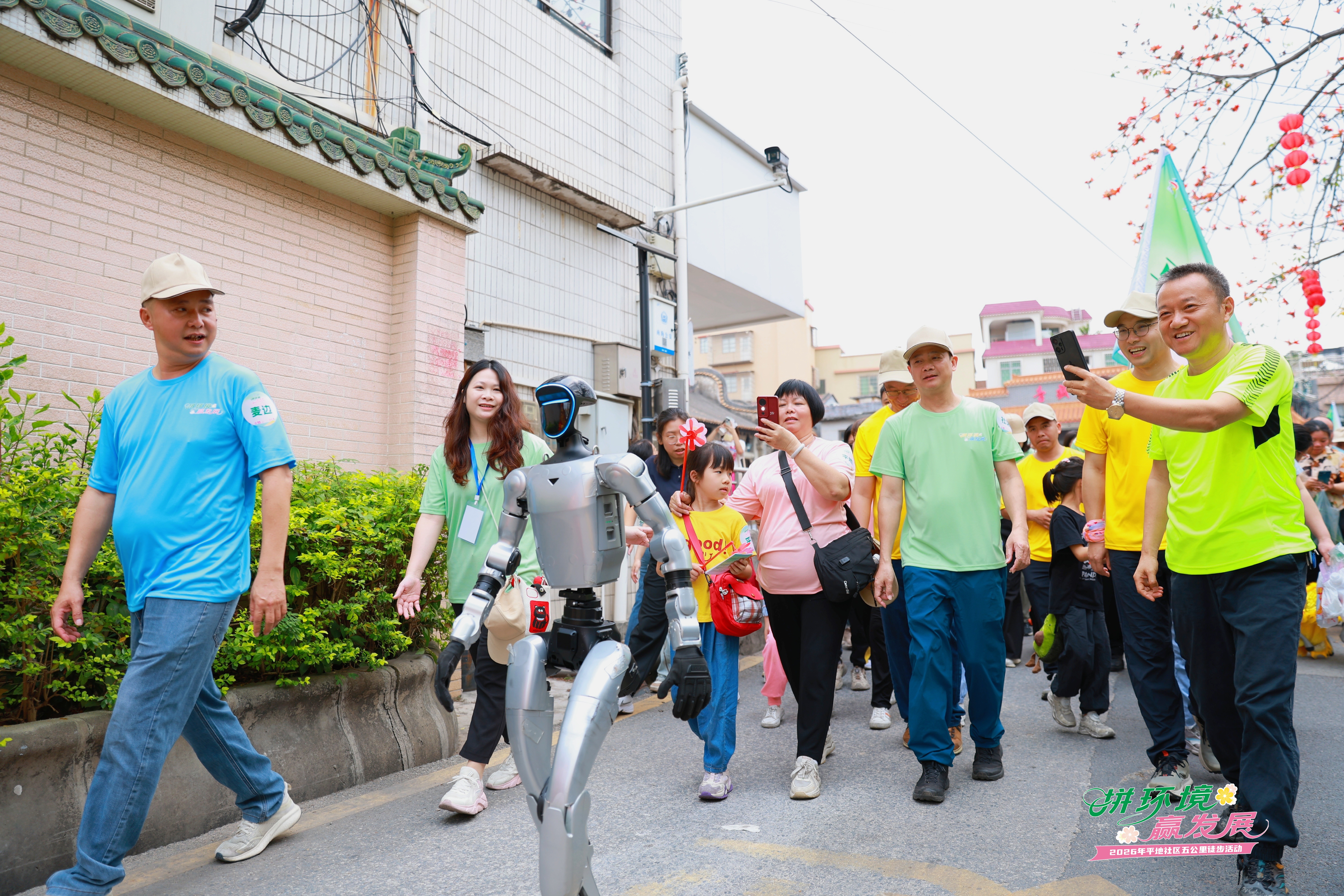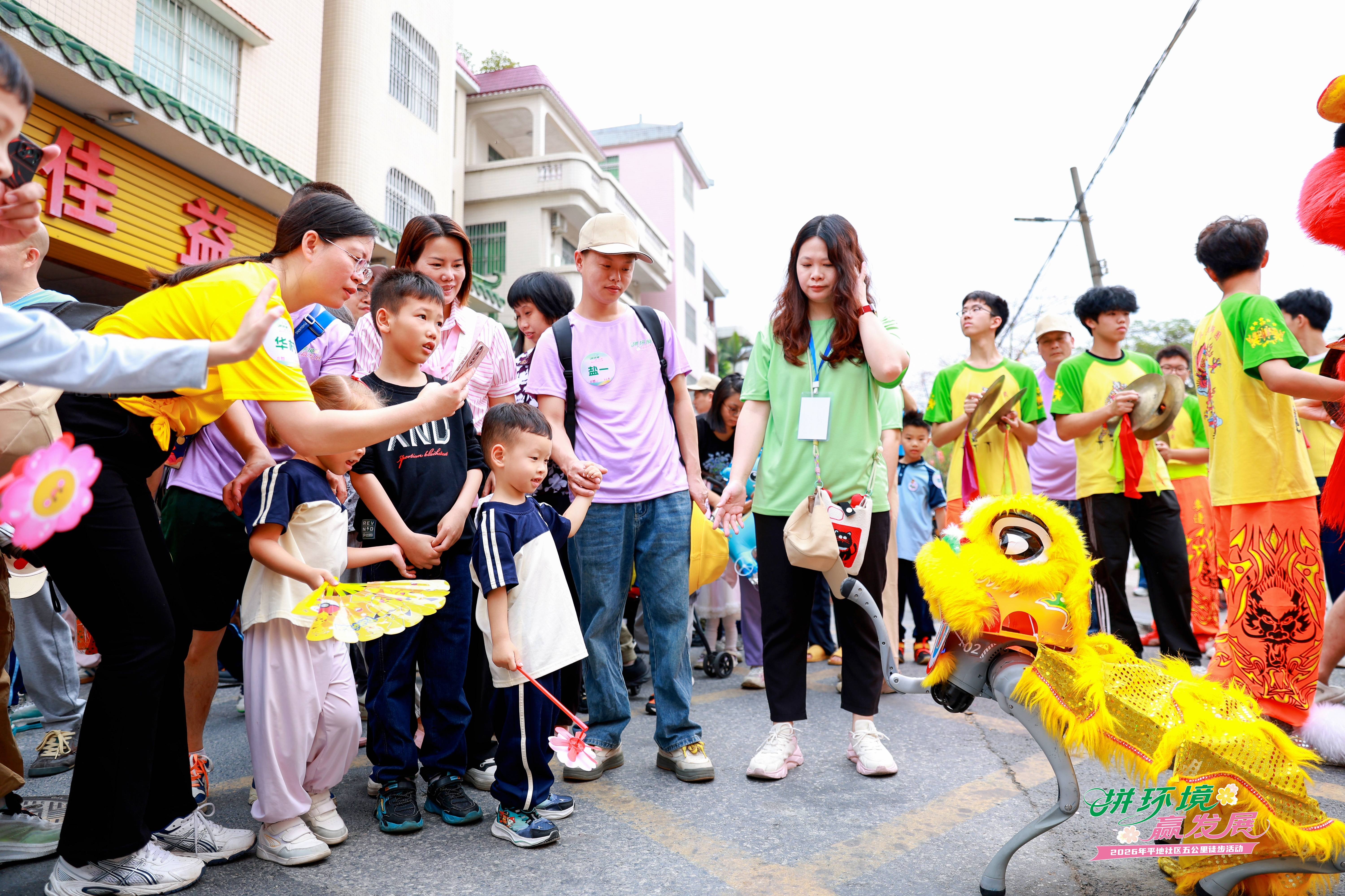 启动仪式上,麦边龙狮与机器狮同台献艺,传统民俗与现代科技碰撞出亮眼火花;平地幼儿园、盐步第一幼儿园与平地健康活力舞蹈队等带来《立春》《有我》《最美是你》等舞蹈节目,与大沥镇村舞大赛提倡的“让村舞成为传承乡村文脉、凝聚邻里乡情的重要载体”相呼应,让村民成为文化舞台主角;机器人、机器狗与小朋友一同律动,展现传统与创新共生、科技与人文交融的未来发展图景。