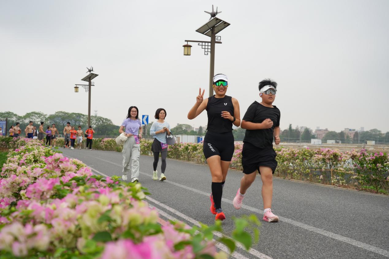 上午9时,随着发令枪响,跑友们分批出发,沿着5.2公里的“花漾步道”奔向情缘花海,在三角梅盛放的春日画卷中,用脚步丈量贤鲁岛之美,用欢笑激活春日多巴胺。赛道沿途串联起漫时光莫奈花园、慢时光宠咖等网红庭院,岛上更有大象园、桐悦等庭院经济示范点,一步一景皆是里水“美丽庭院”建设的生动答卷。跑友们穿行其间,既能感受花海江景的自然之美,也能领略庭院经济的蓬勃活力。