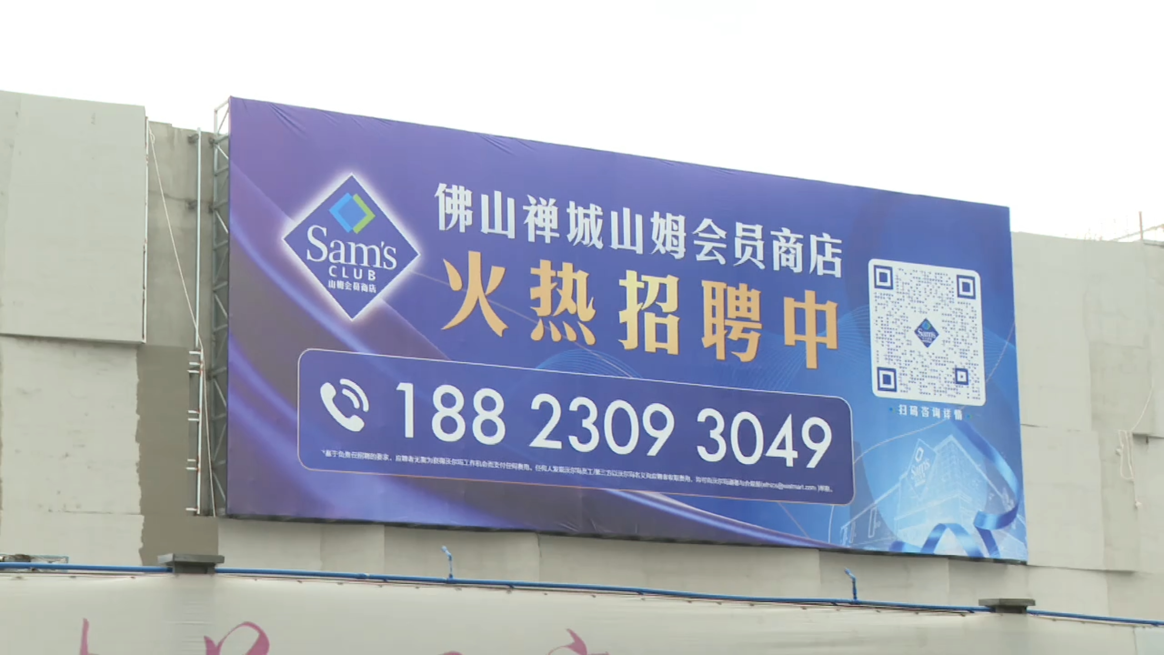 与建设收尾同步推进的,是山姆方的运营筹备。记者注意到,项目外围已张贴出醒目的招聘广告,吸引路过市民驻足细看。