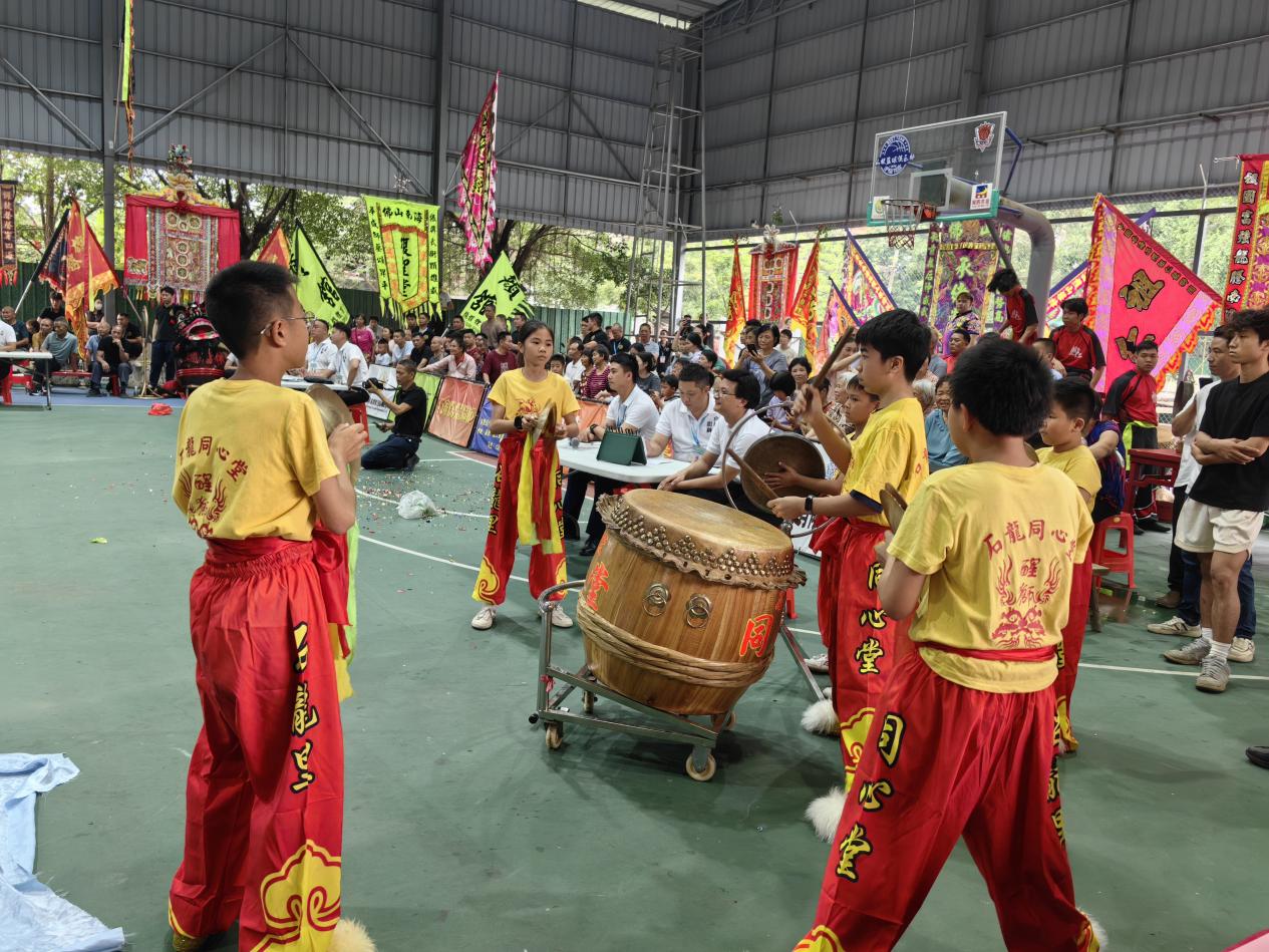 本次比赛的参赛队伍不仅涵盖了传统武馆和村居醒狮队,还特别邀请了西樵中学因特龙狮团等年轻队伍。这些小将们,虽然脸庞稚嫩,但打起鼓、舞起狮来却是一板一眼,虎虎生风。他们用自己的方式,为古老的南狮注入了青春的活力。
