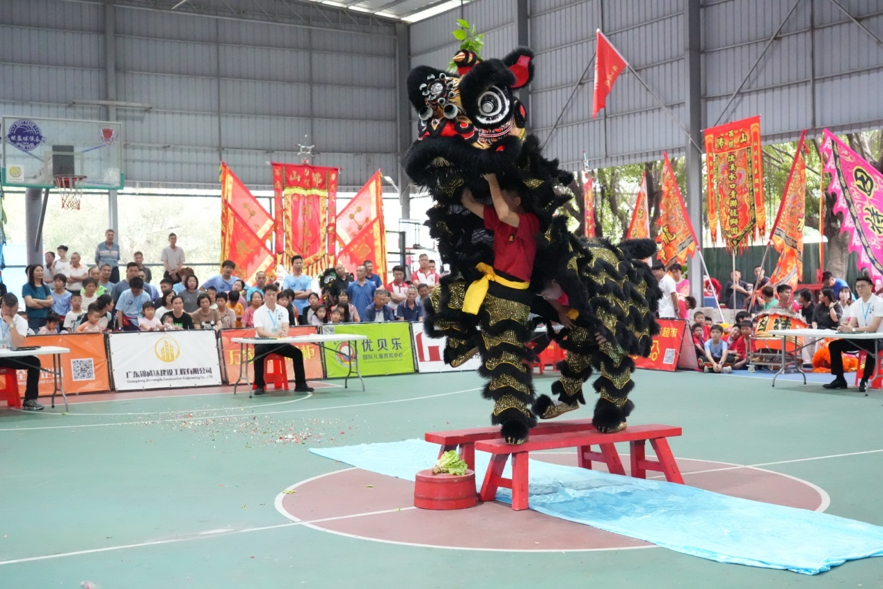 下午两点半,14支参赛队伍的醒狮精神抖擞地步入赛场。他们中既有百年传承的老牌堂口,也有校园里崭露头角的新生力量。山根寨边颜馆体育会、西樵中学因特龙狮团……一个个熟悉的名字,让现场观战的乡亲们倍感亲切。