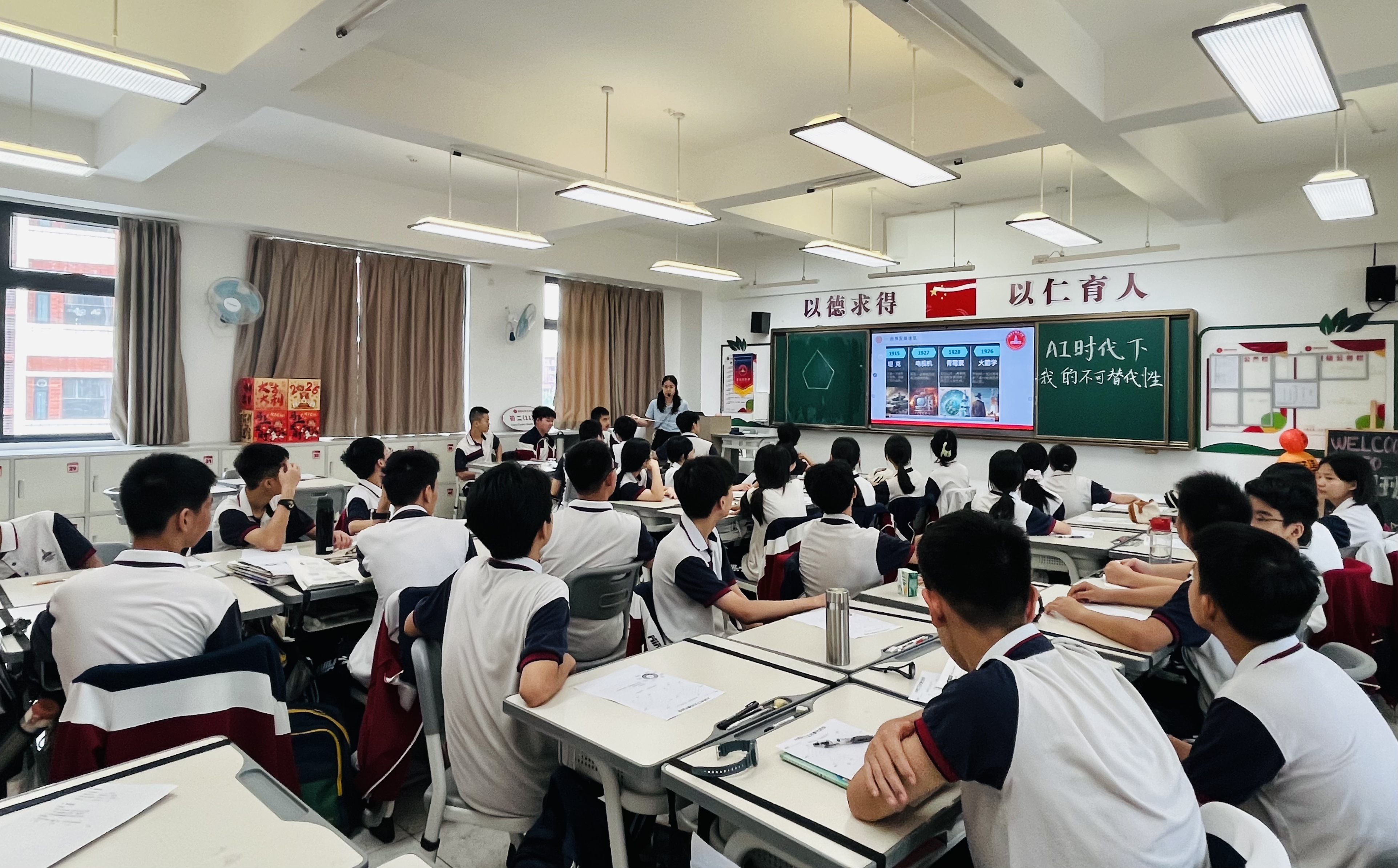 如果说趣味科技体验是开放日的“开胃小菜”,那遍布校园的智慧课堂与特色课程,便是这场教育盛宴的“主菜”。小学部、初中部同步开课,近百节课程各展所长,其中初中部将AI技术、双师教学、小组合作、实践探究融入日常教学的创新形式,让课堂充满活力,也让家长们看到了不一样的教学模样。