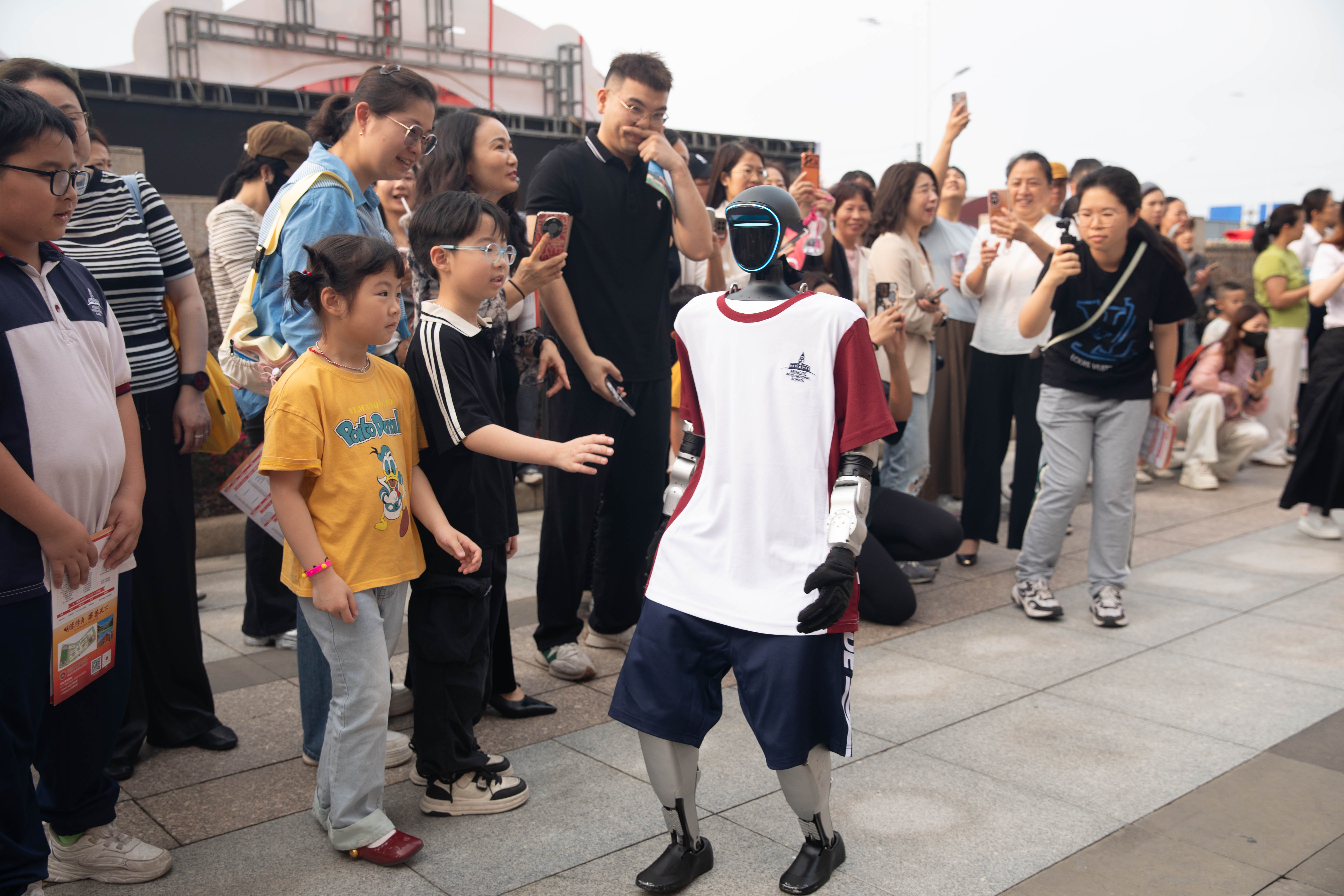 刚踏入校园,功夫机器人的精彩展演便吸引了所有孩子的目光。随着指令发出,机器人灵活摆出出拳、踢腿等武术招式,动作行云流水,引得孩子们围在一旁拍手叫好,不少孩子还伸手与机器人“互动”,好奇地研究着这个“功夫高手”。