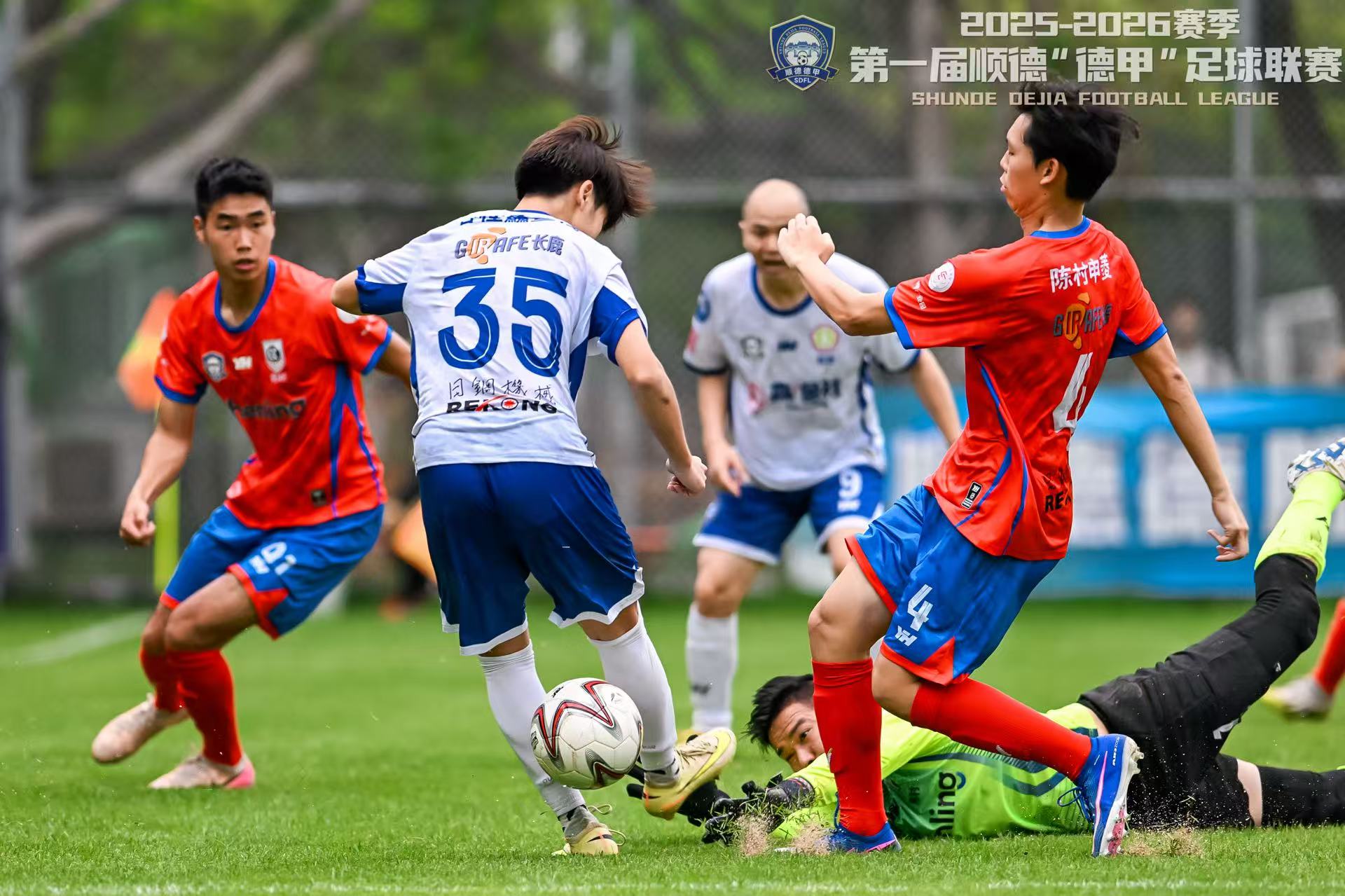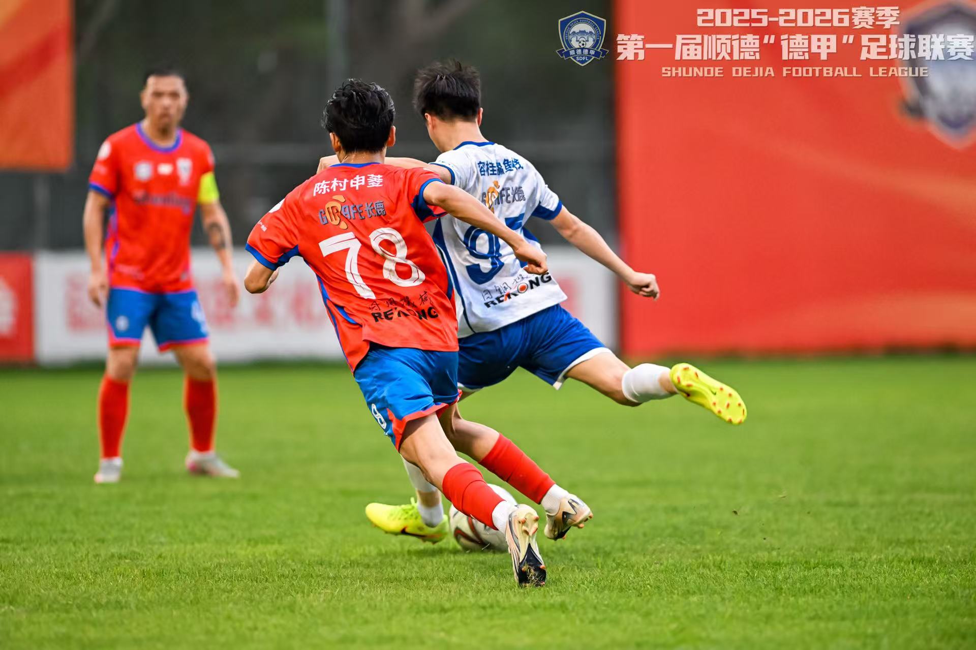 当天,在阵阵加油和喝彩声中,容桂鱻鱼栈队迎战陈村申菱队,双方球员每一次拼抢、传球与射门都全力以赴,用汗水诠释着草根足球的纯粹与力量,展现着各自的拼搏与担当。