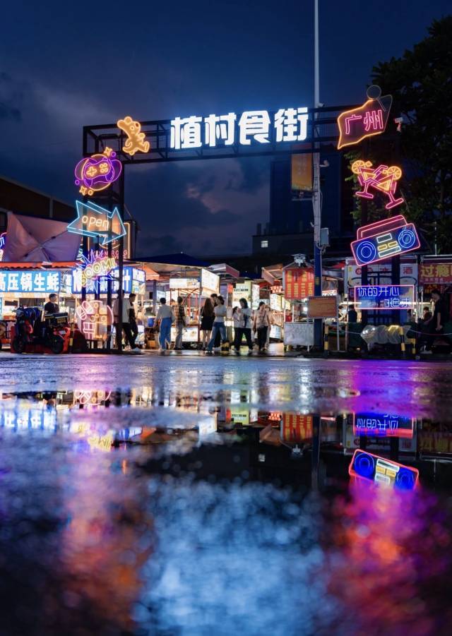 在这里可以尝遍天南海北的地道风味:湛江湿辣牛肉、广西老友粉、荔枝木烤鸡、现烤脑花……管理规范,环境整洁,每晚都热闹至凌晨。