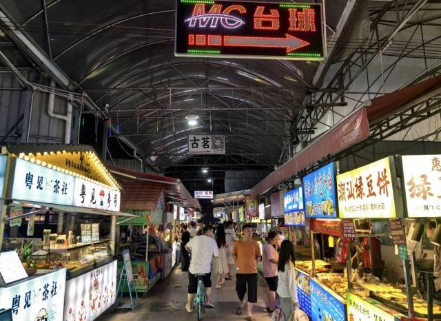 位于平洲玉器街核心区,采用创新的“潮汐车道”设计,白天通车、夜晚经营,长达近一公里的街道汇聚超300个摊位,人气火爆被称为“夜市天花板”。