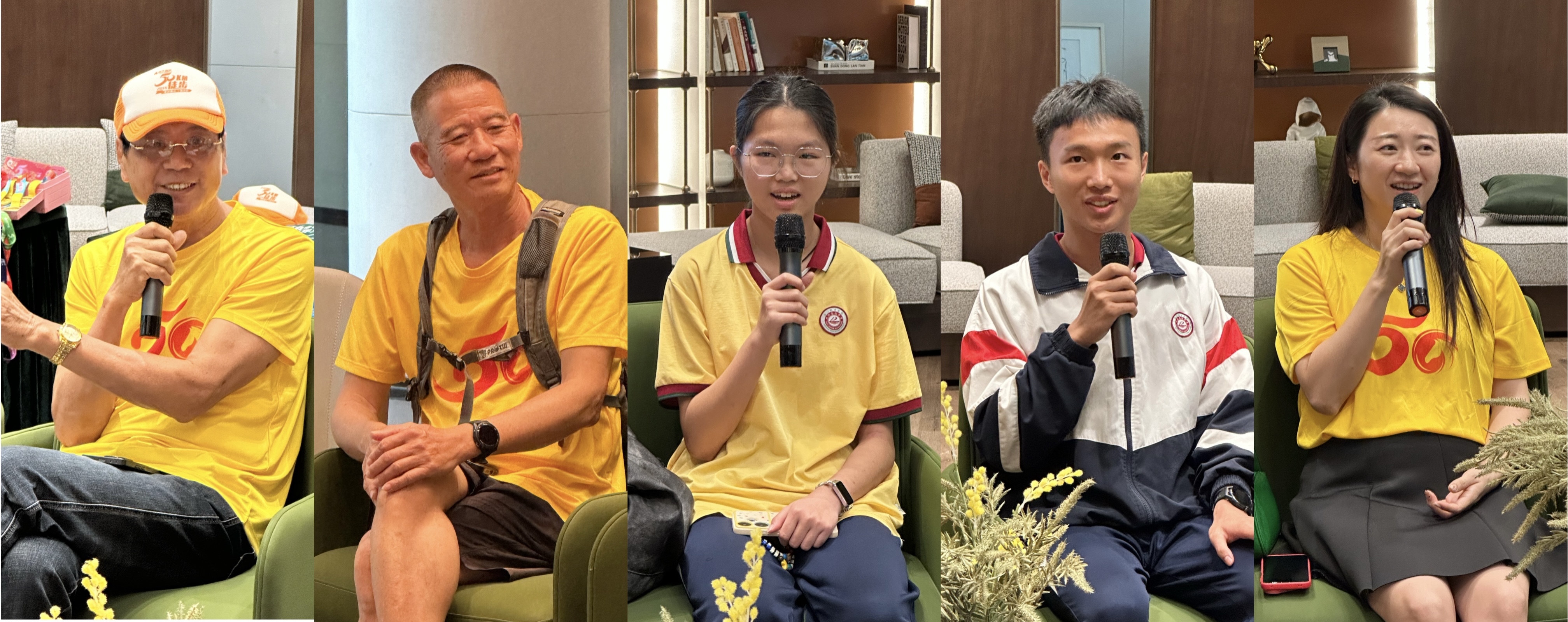 大沥高级中学的团委书记庞潇潇介绍,校方从2019年开始组织学生参与,今年更在起点组织了千人方阵,齐唱军歌。“我们建了个‘终点到达群’,学生们一路打卡、互相鼓励。” 在她看来,在AI时代,让孩子放下手机,用脚丈量城市,比任何说教都重要。现场的学生代表,用最朴实的语言讲出深切体会:“坚持,合作!”
