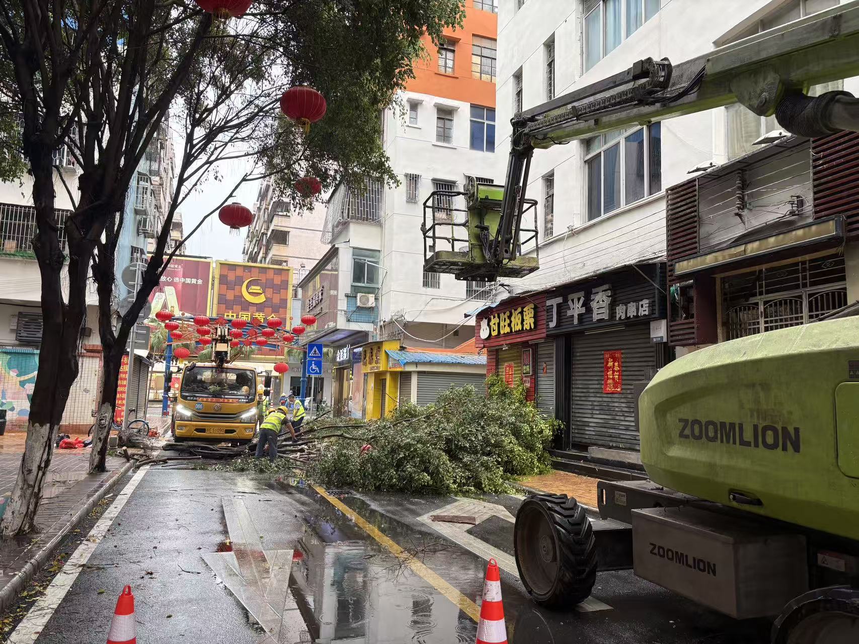 高明区雨后立即开展倒树清理工作。
