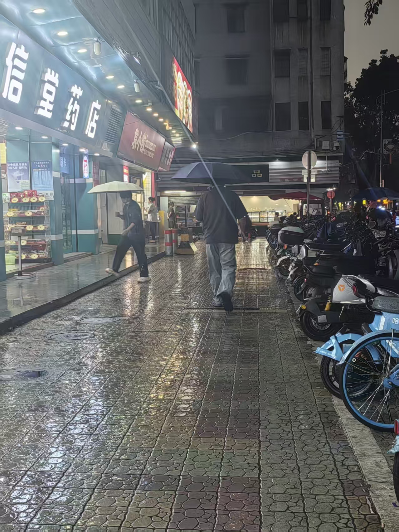 18时30分前后,高明天色依旧阴沉近黑。文华市场附近的商铺已经亮起灯光,之前一阵疾风骤雨过后,街上行人不多。
