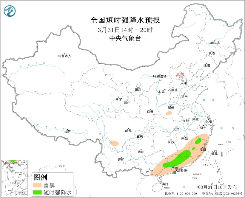 预计17时前后禅城区将转有强雷雨,并伴有8级左右阵风和短时强降水,佛山市气象台2026年3月31日15时6分发布禅城区雷雨大风黄色预警信号,禅城区应急管理局、佛山市气象局禅城工作组提醒您:请做好短时大风、雷电等的防御工作。