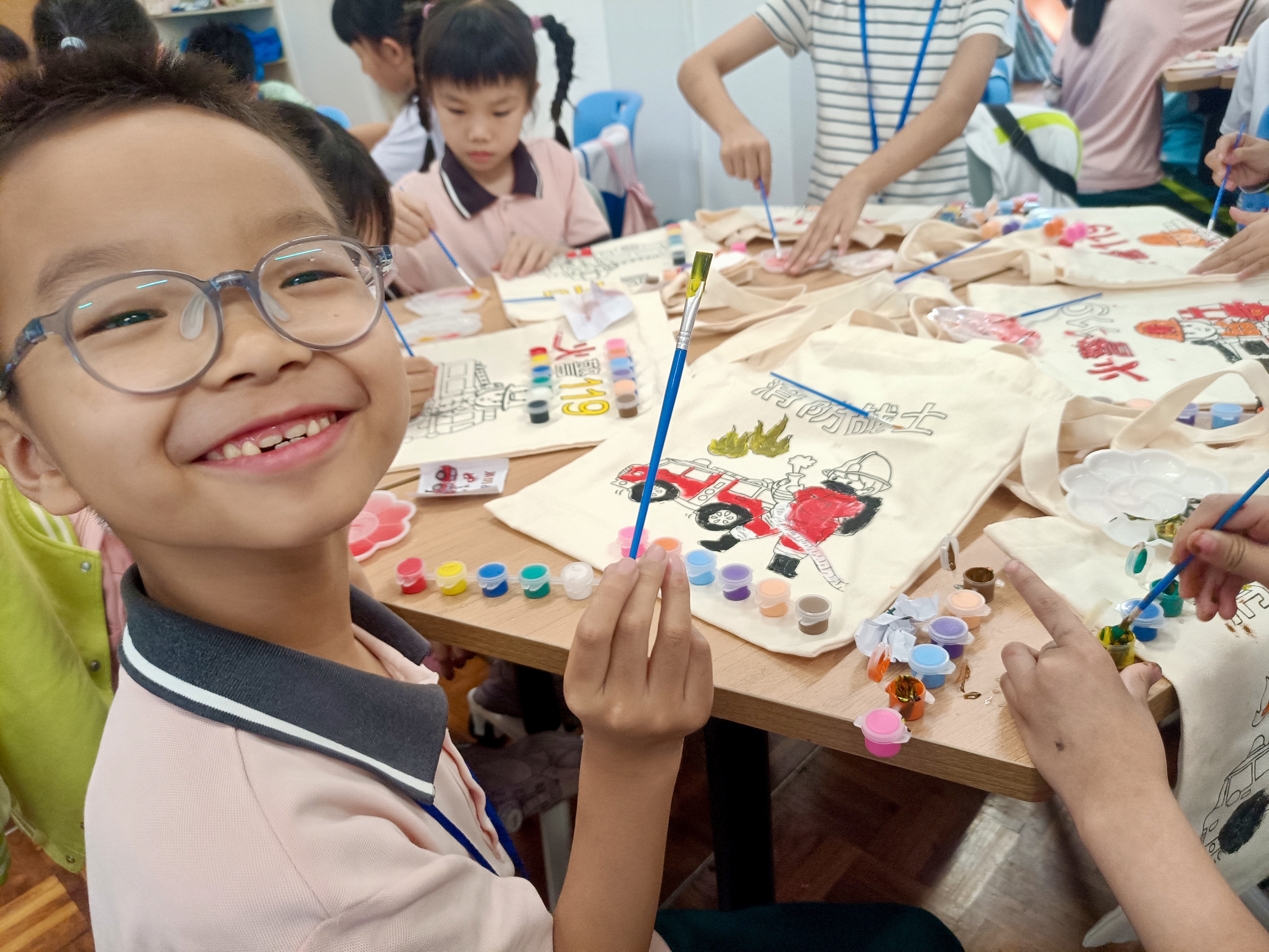 午间,营养午餐与舒适休息区同步就位,工作人员全程细心看护,让孩子吃得安心、睡得踏实,也让在岗家长彻底放心。下午课程持续升温:情绪认知深化、自护教育课堂、创意帆布袋手作,安全知识与实践操作巧妙融合,孩子们在动手创作中提升自我保护能力。