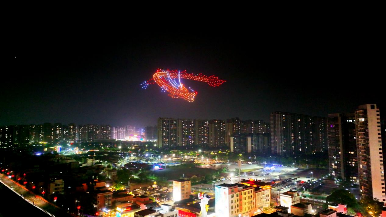 4月2日晚,首场千架无人机夜空秀点亮高明夜空。千架无人机以光影为艺术笔触,千架无人机编队整齐升空,以锦鲤文化、龙傲天际为主题,用科技光影打造乡村夜空视觉盛宴,成为春假必看夜间打卡项目,瞬间引爆现场氛围和朋友圈传播,成为蘇村春假潮玩科技节的一大亮点。4月3日-6日,千架无人机秀将在晚8:30上演。