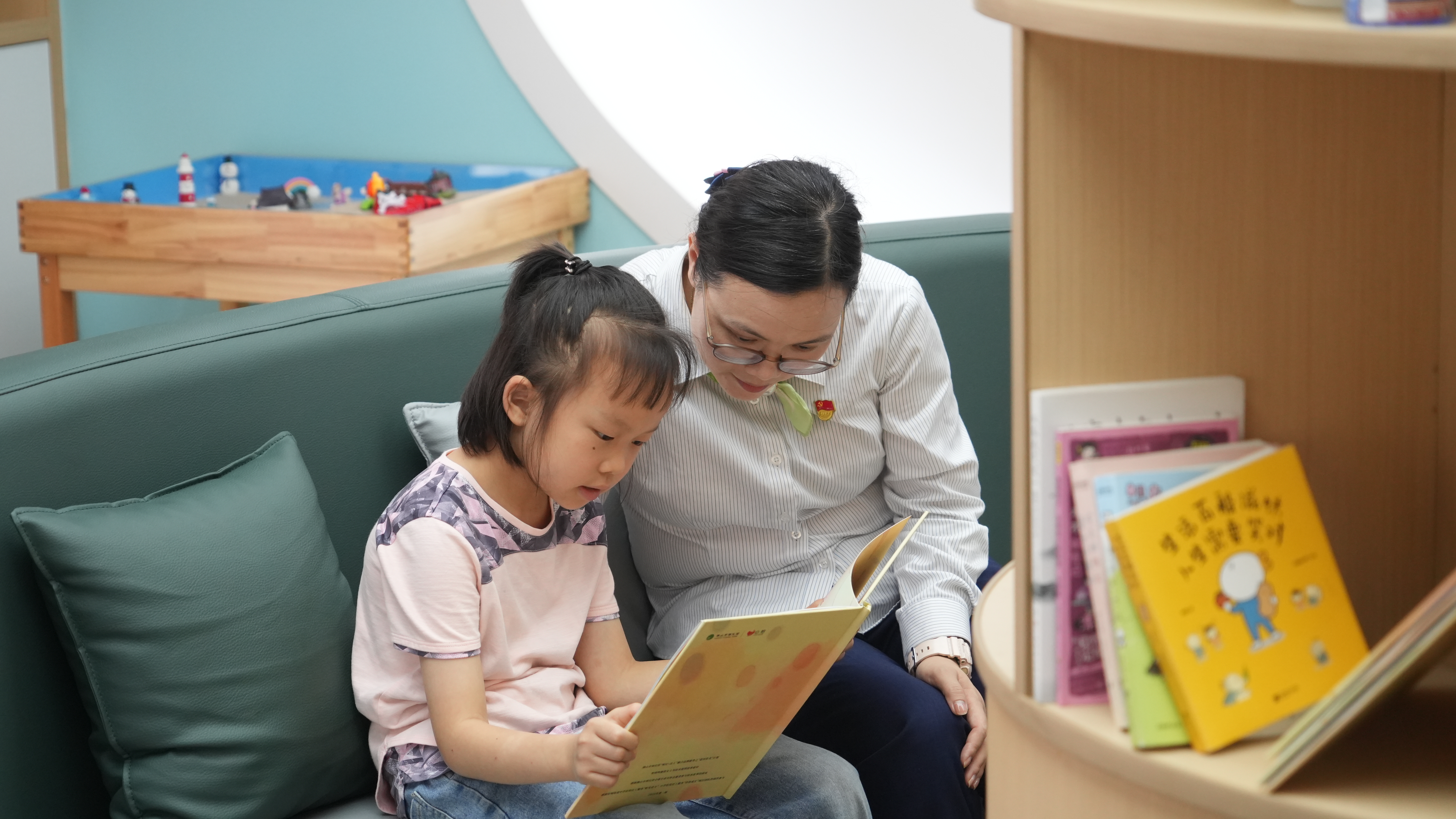 高级社工黄秋梅陪伴孩子阅读。