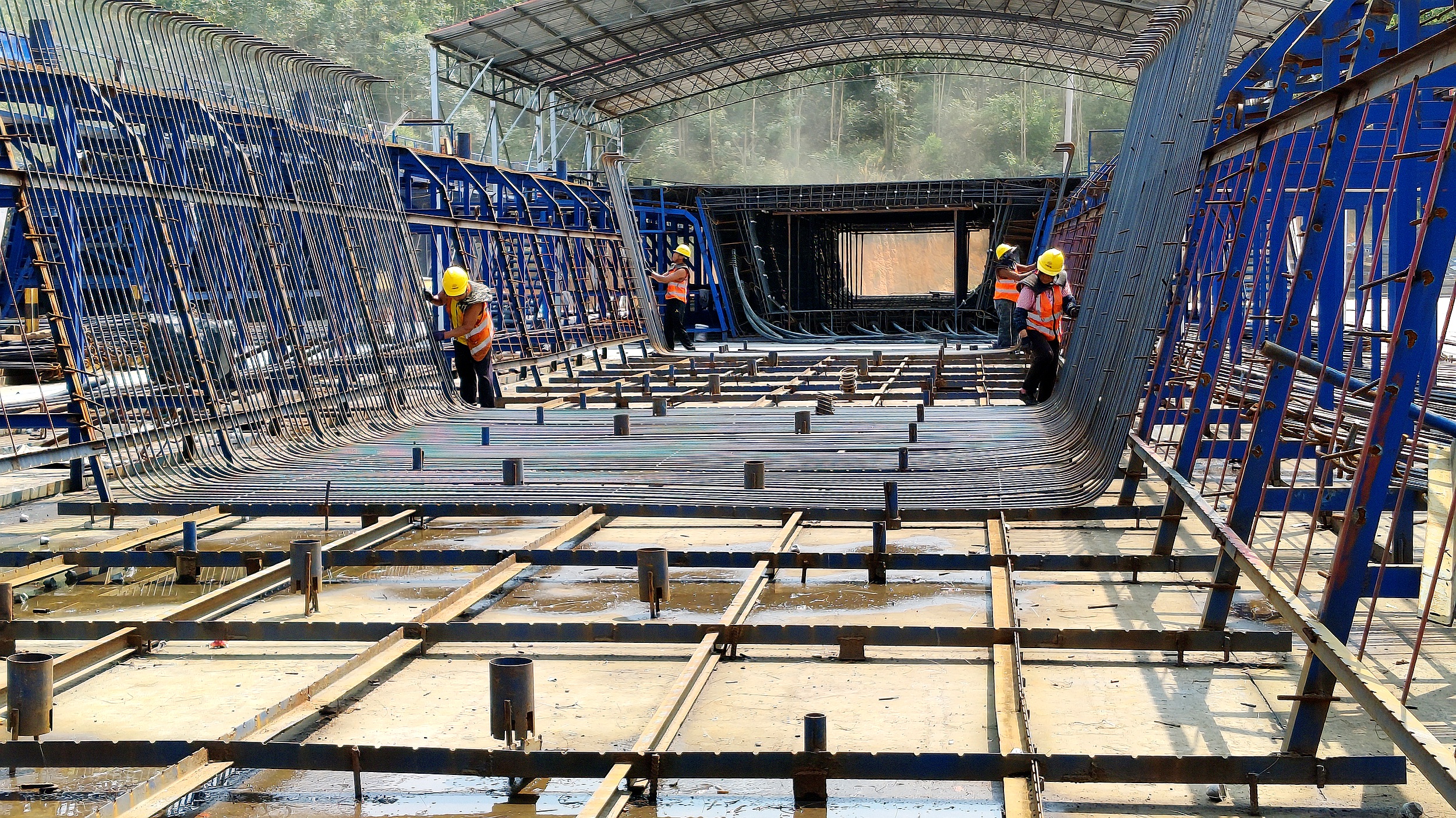 连日来,佛山市高明区更合镇布练村东侧的中铁十二局高明西梁场一片繁忙,吊机来回穿梭,施工人员各司其职、有条不紊,全力开展预制箱梁钢筋绑扎作业,为即将进行的浇筑施工做好充分准备,以实干劲头抢抓施工黄金期。“目前我们项目部的路桥隧道主体工程施工已经全部结束,完成了79.9%产值,剩余的一些附属工程和预制梁工程正在加紧推进。”中铁十二局高明西制梁场总工程师黄浩向记者介绍。