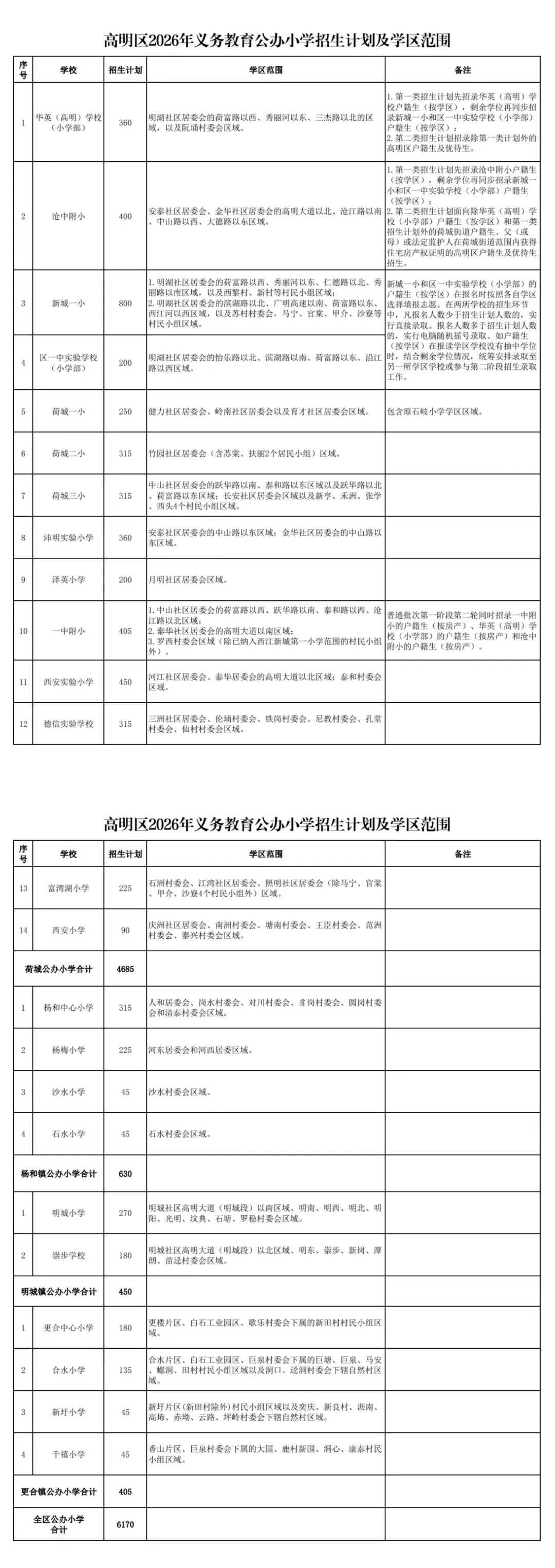 全区2026年义务教育公办学校招生计划为11470人。其中,小学6170人,初中5300人。(招生计划及学区范围详见下图)。