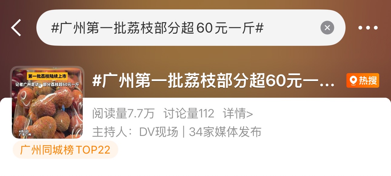 近日,微博话题#广州第一批荔枝部分超60元一斤#登上热搜,广东网友纷纷热议:“今年的荔枝自由还有吗?”带着这个问题,记者走访了各大电商平台、线下商超与农贸市场,一探荔枝的“身价”走势。