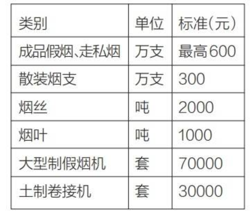 欢迎广大群众对以上涉烟违法活动线索进行举报,我们郑重承诺,对举报人及举报信息严格保密。举报线索经查证属实的,将根据查证情况按以下标准予以奖励: