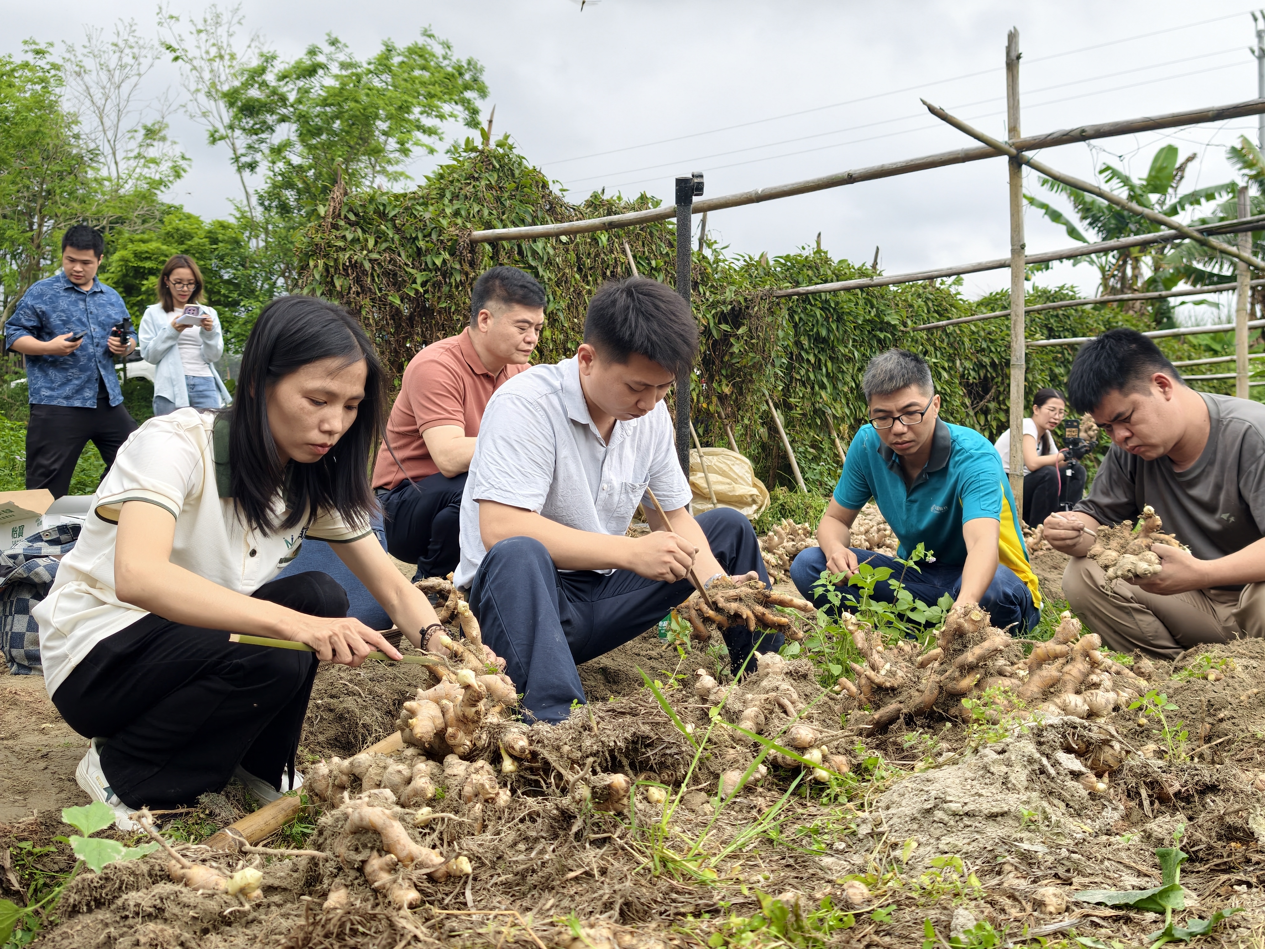 然而今年以来,受市场需求不旺、种植信息不对称等多重因素影响,合水生姜出现不同程度滞销,大片优质生姜积压田间,让农户们忧心忡忡。为解姜农燃眉之急,高明自媒体联盟、高明融媒、高明邮政公司自发牵头,联合更合镇政府、香山村委会搭建助农桥梁,组织开展这场专场直播,高明三姑娘、佛山老何、vicky老板娘等多名网络达人主动响应,迅速组成助农直播队伍。