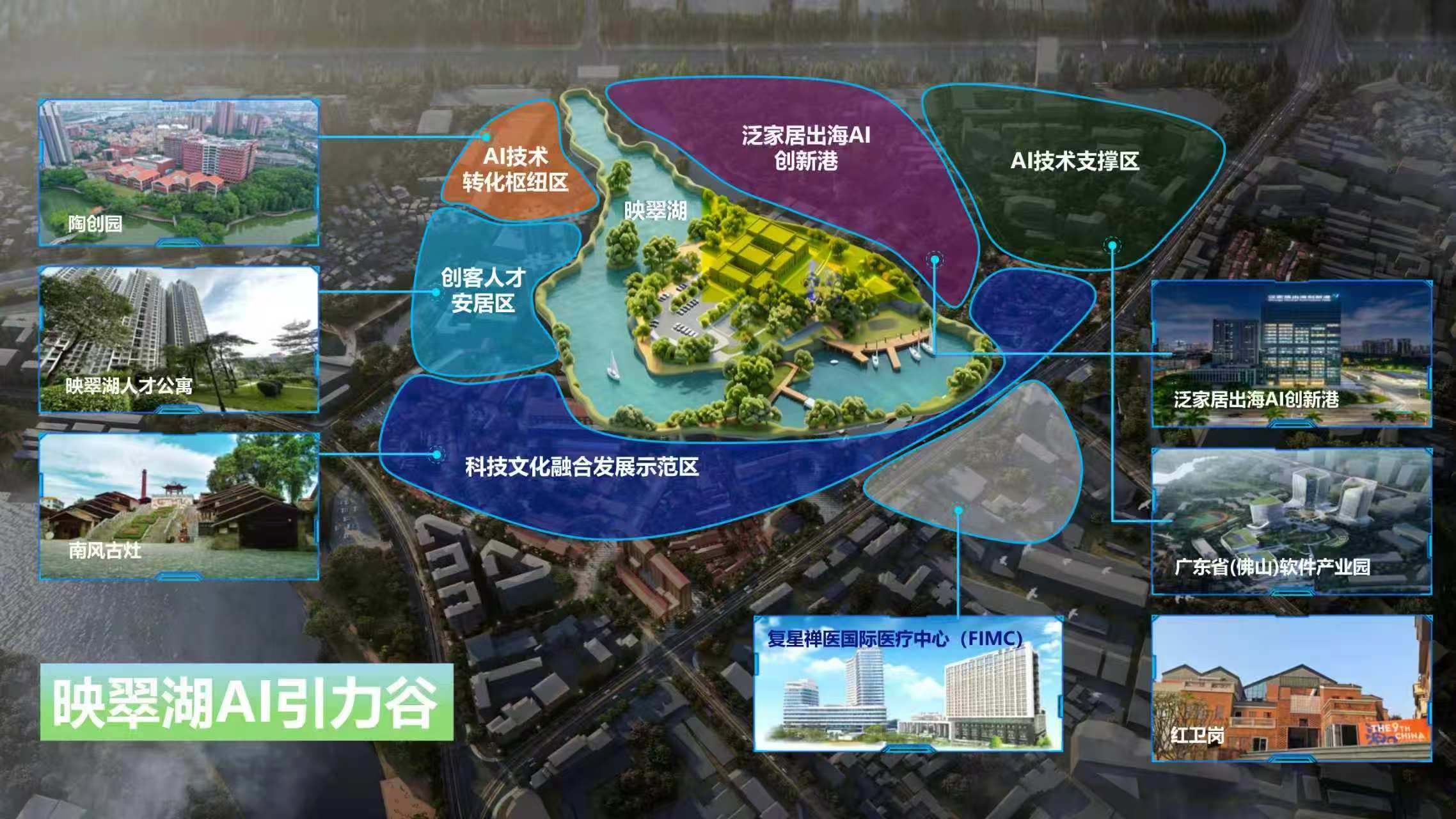 映翠湖AI引力谷作为“一谷一轴三园”的核心,承载着聚人才、孵产业的重要使命。映翠湖源自上世纪五十年代开凿的人工湖,如今成为城市绿心“石湾公园”,谷内共五大功能分区。其中,OPC创业孵化核心区依托泛家居出海创新港·AI项目打造AI赋能的跨境创新创业生态平台,集聚培育一人公司等轻量型创业主体;AI技术支撑区依托广东(佛山)软件园,强化算力与技术研发,为产业转型赋能;AI技术转化枢纽区以陶谷智创园为核心,推动数字技术与泛家居产业深度融合、成果落地;创客人才安居区配套高品质人才公寓,解决人才居住需求;科技文化融合发展示范区融合陶文化与科创元素,完善综合配套,共同构建“科创+文化”融合生态,为泛家居出海注入动能。